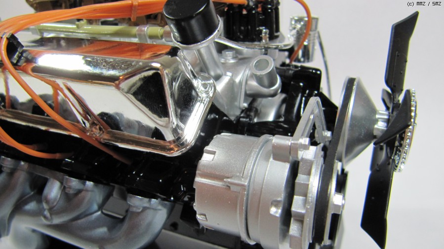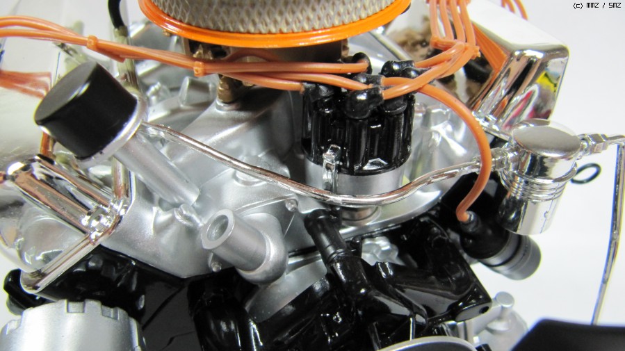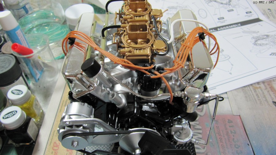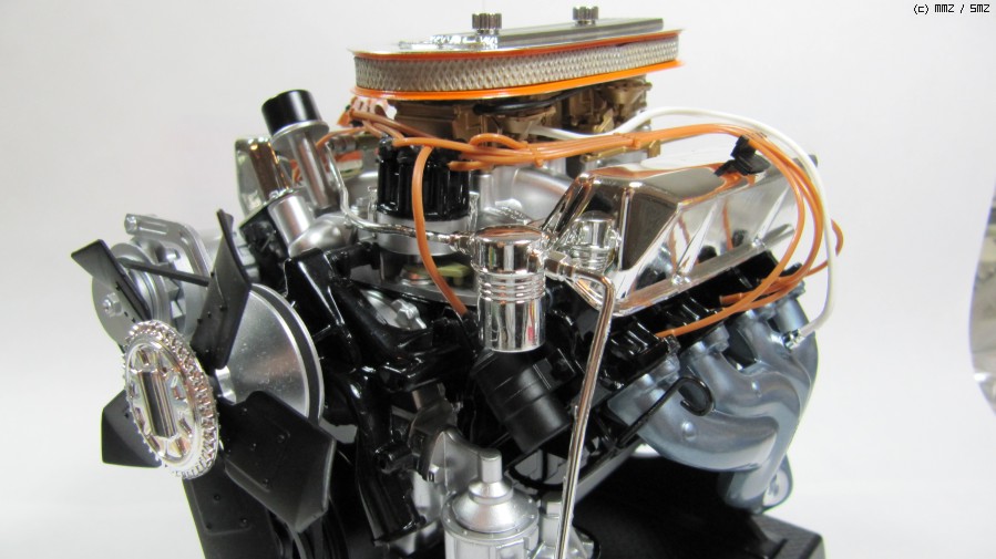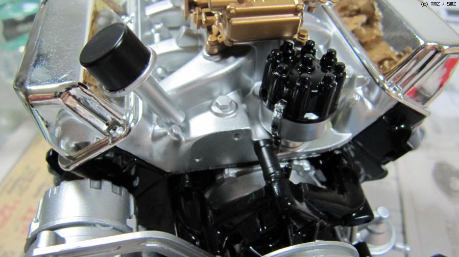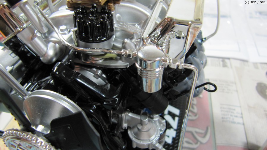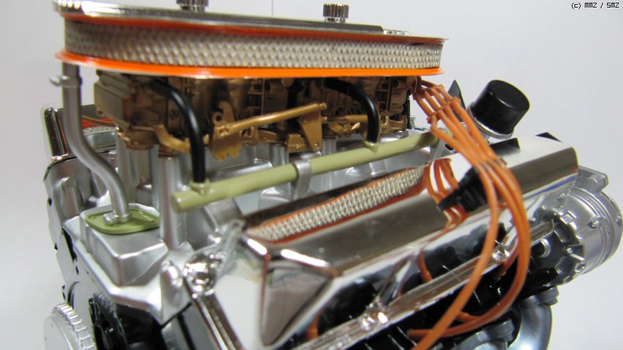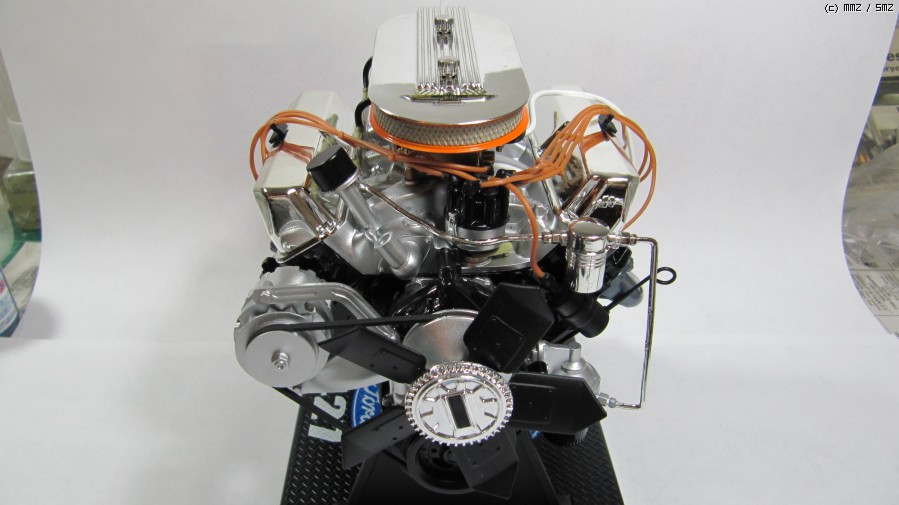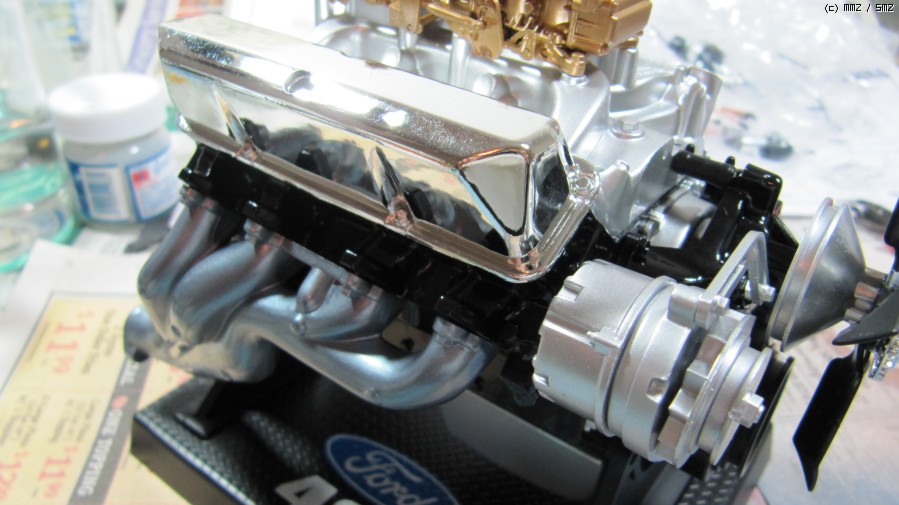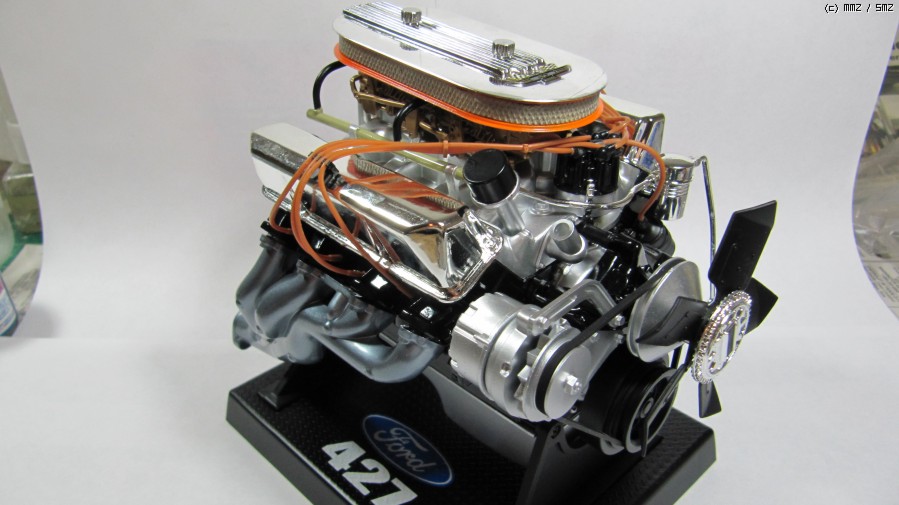 썬더버드 문양의 427 엔진. 이렇게 공기필터를 얹음으로써 조립 완료되었습니다.