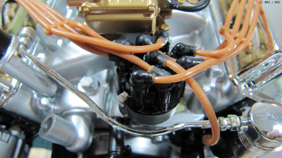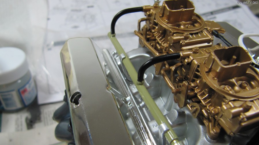 오일 캡과 디스트리뷰터 캡. 원래 디스트리뷰터 캡은 무광이어야 하는데, 이 킷은 유광으로 두텁게 도색했더군요. 이게 나중에 탈을 일으킵니다.