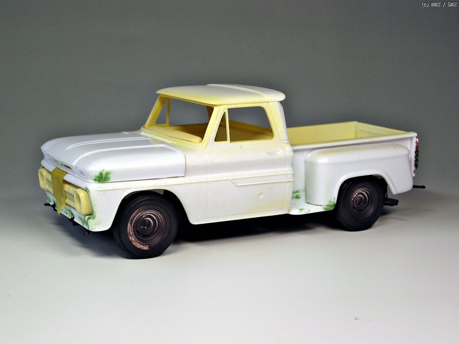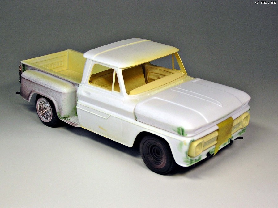 레벨/모노그램사에서 오래전에 출시된 고전키트입니다. 원래 개인적으로 50~70년대에 나왔던 미국산 트럭이나 머슬카들의 디자인을 워낙 좋아하는데 최근에 본 영화에서 모티브를 얻어 '급'땡김을 참지못하고 만들고 있슴다^^; 원래 모티브가 된 차량은 62년식인데 65년식밖에 키트가 없군요, 아주 미세한 차이만 있을 뿐 거의 동일합니다. 8월 중순안으로 마무리 짓도록 해보겠습니다~