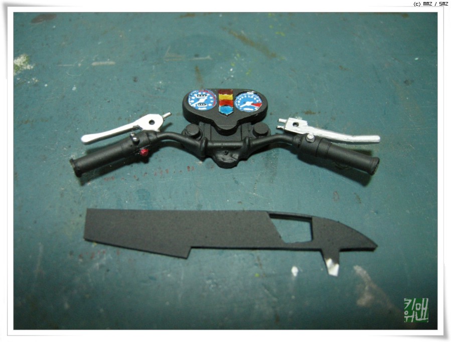 작업중에 알게된 분실된 핸들과 계기판, 체인커버는 자작했습니다.