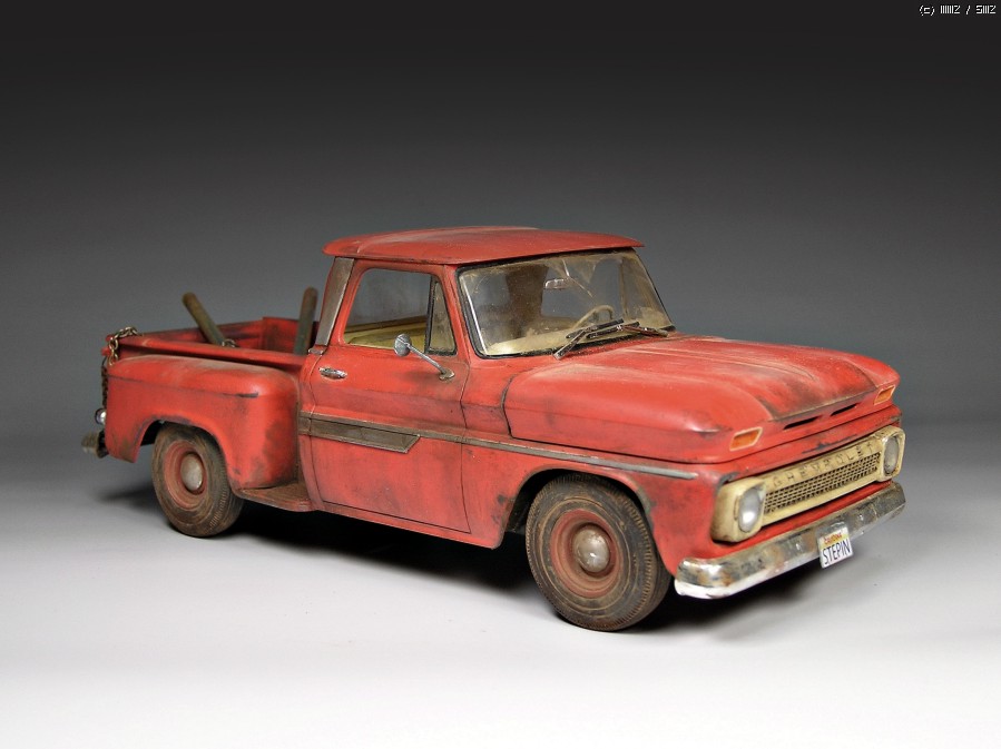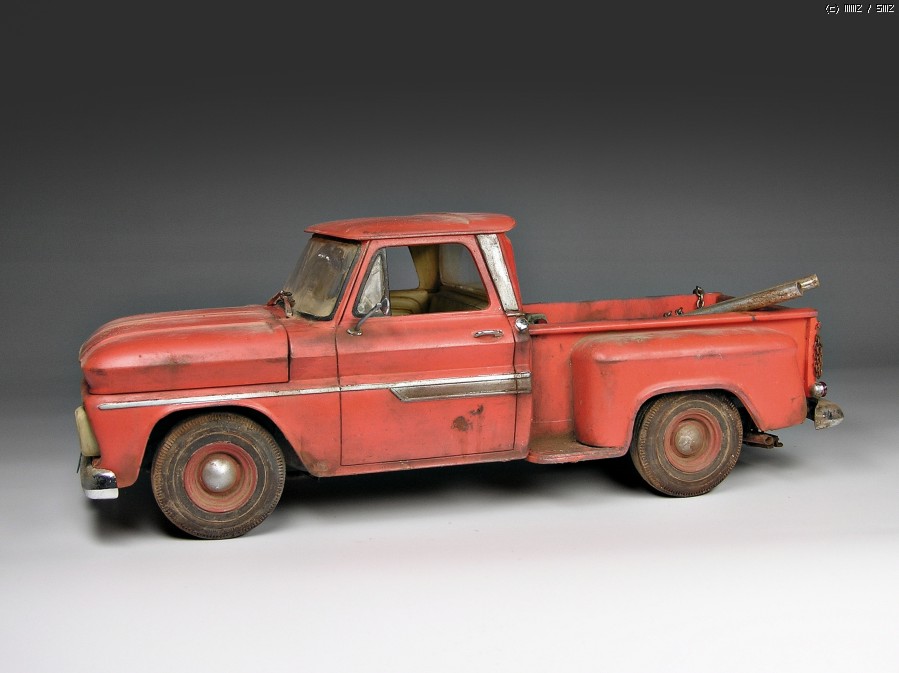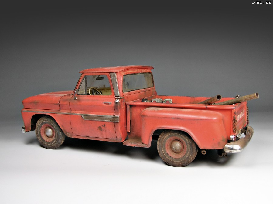 한번쯤 만들어보려고 생각하고 있었는데 최근에 인기를 끌고 있는 뱀파이어 영화 "트와일라잇"시리즈에서 여주인공인 벨라스완이 타고 다니는 픽업트럭을 보고 반해서 @.@;;(주인공포함ㅋ) 바로 작업에 착수했습니다. 트와일라잇 시리즈는 원작소설을 바탕으로 하고 있는데 소설에서는 53년도형 Chevy truck이라고 나오지만 영화에서 사용된 차량은 62~63년형 입니다.