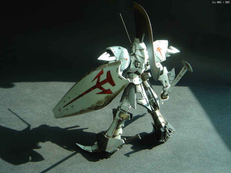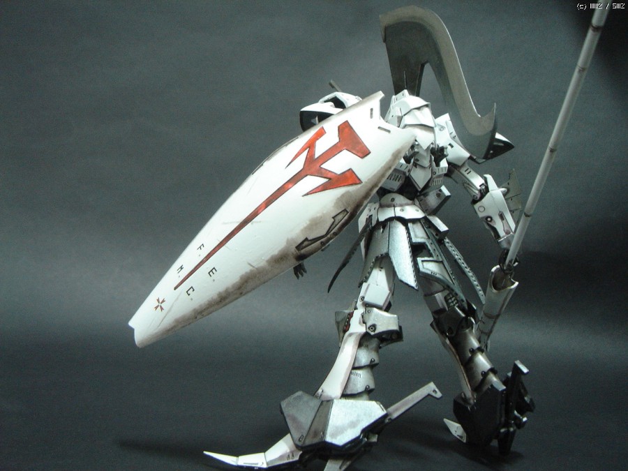 등의 일부 장갑을 제거하고, 방패도 한 쪽만 장비한 걸로 하고 지나치게 긴 창은 사진처럼 뚝딱 부려뜨려 묘사했습니다.