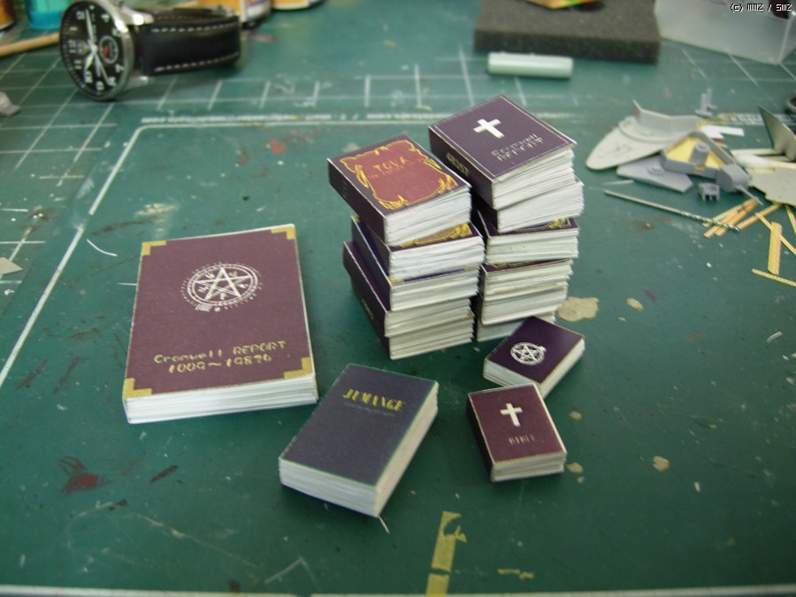 바닥에 책들은 전에는 플라판 제일 얇은것들을 하나씩 적층해서 만들었는데, 이번에는 종이를 제단해서 만들었습니다.