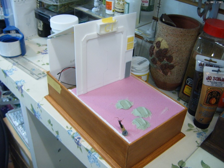 락카 와 타미야아크릴 로 도색해줬구요/베이스는 프라판 과 발사목,led 와 광섬유 로 제작해줬습니다.
