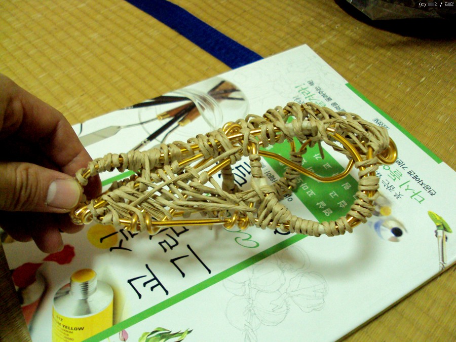 노끈을 이용하여 지점토가 올라갈 자리를 꼼꼼히 엮어 줍니다.