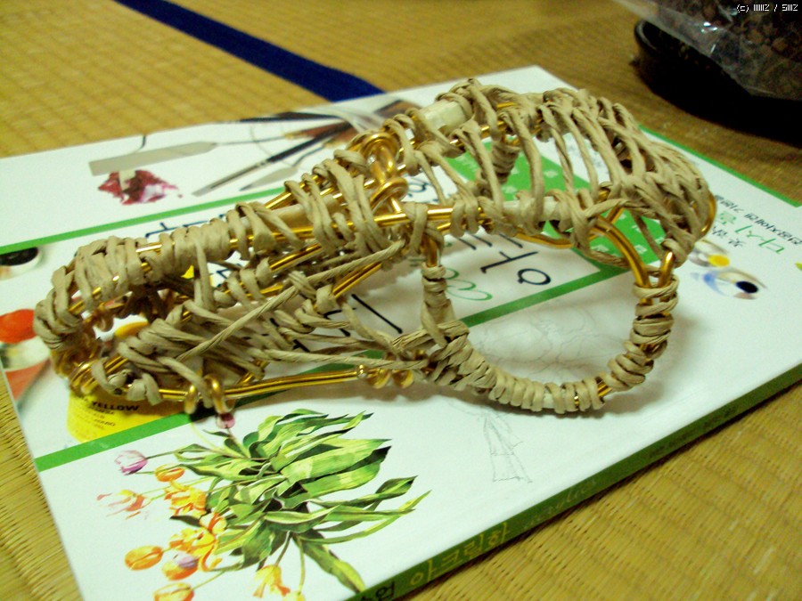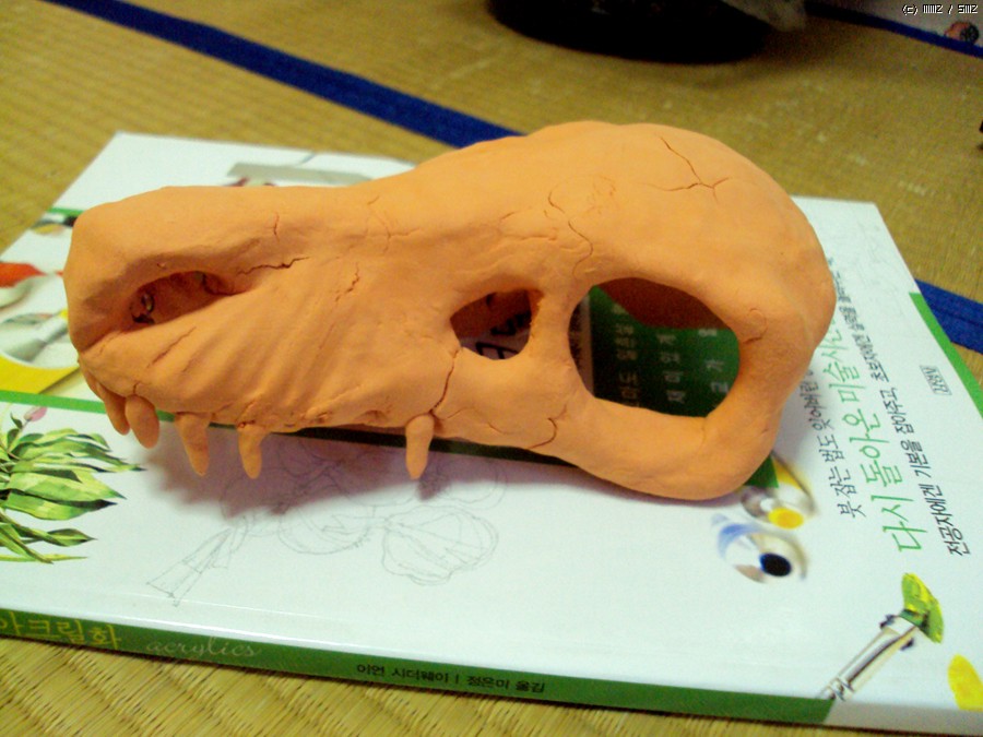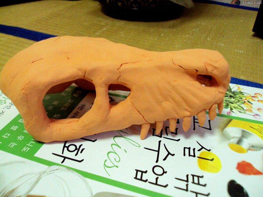 노끈을 너무 많이 엮었는지 골격이 너무 굵어졌네요. 결국 처음 의도했던 모양과는 거리가 멀어졌네요... 사실 이게 벨로시렙터인데 개뼈가 되고 말았습니다. 그래도 학생들이 좋아해야 할텐데요^^