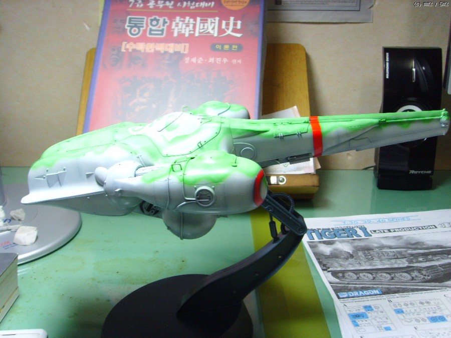 대충 전체적인 모습입니다. 나름 색감 괜찮게 되었다고 생각하고 있습니다. 그레이부분은 명암도색, 초록색 부위는 채도차를 줘가며 작업했습니다.