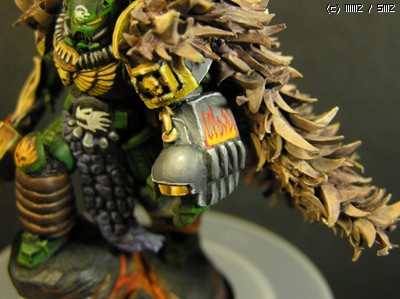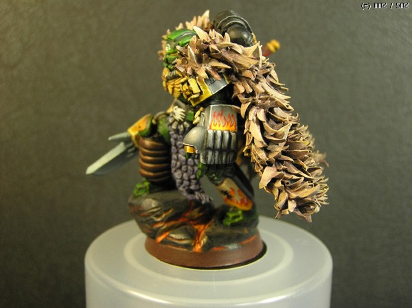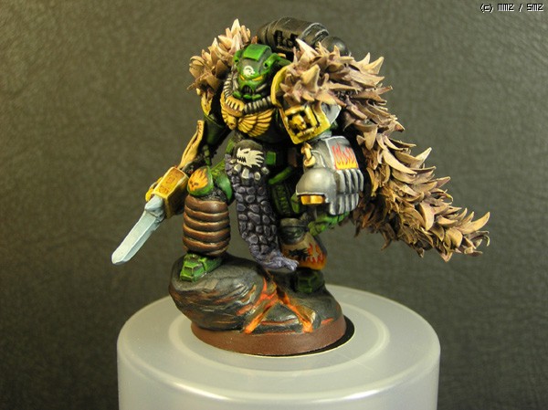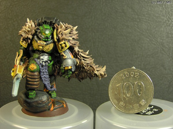 칠하기는 고2때인가 고3때 칠했는데, 이번에 도색이 까져서 보강하고 다시 올립니다. 건틀렛은 아예 새로 칠했구요. 당시에 불칸이라는 캐릭터의 정식 모델이 없어서 일반 보병모델로 컨버젼했습니다. 망토는 완전 자작인데, 프라모델 런너 모서리를 잘라서 올을 만들고 퍼티로 만든 망토에 하나하나 붙여 완성했습니다. 하다말다 하다말다 해서 반년만에 완성됐던...