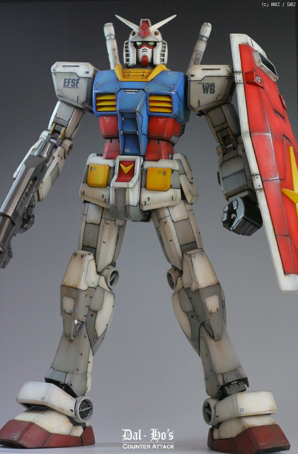 일년전쟁 킷은 웨더링이 제맛인지라 워싱과 드라이브러싱, 녹표현 등.. 적당한 웨더링을 추가했습니다.