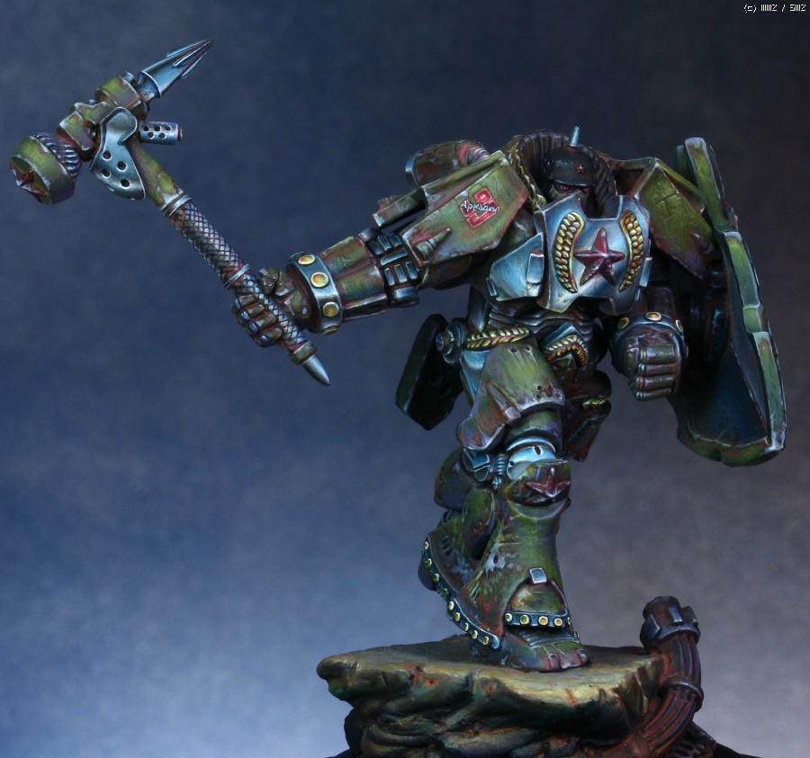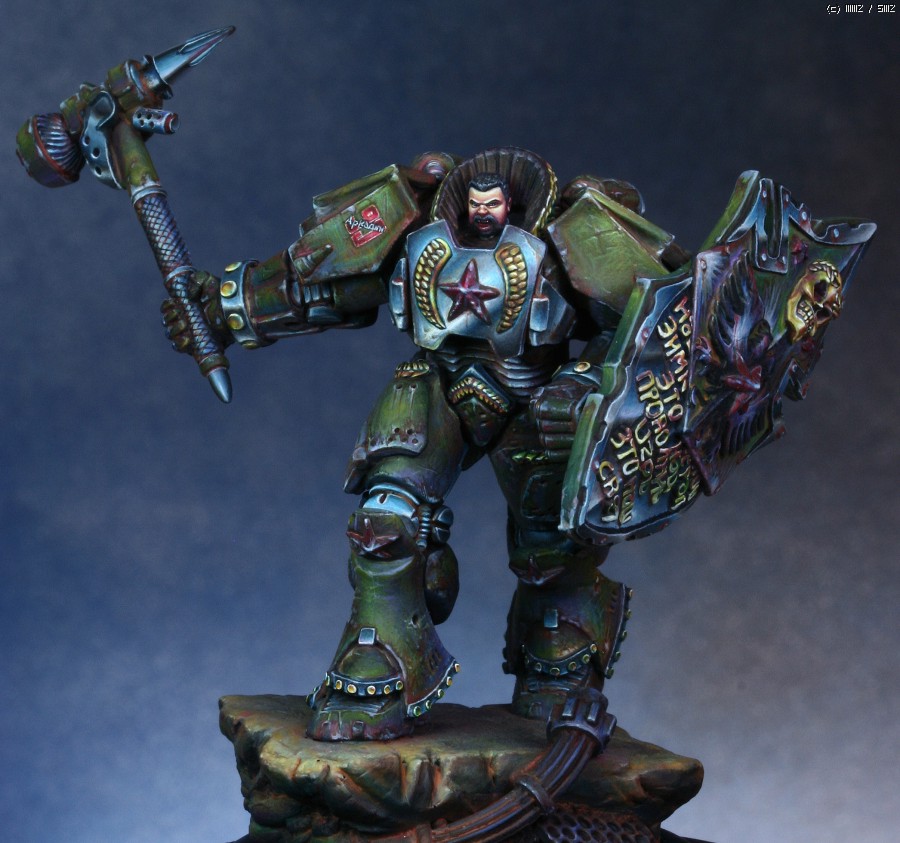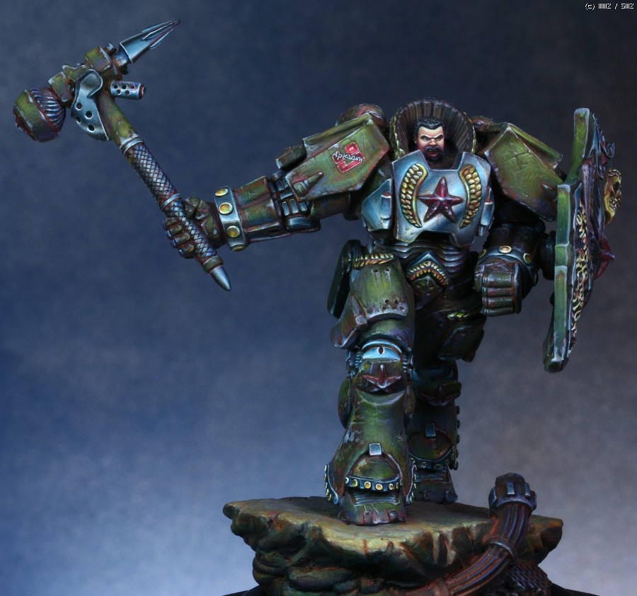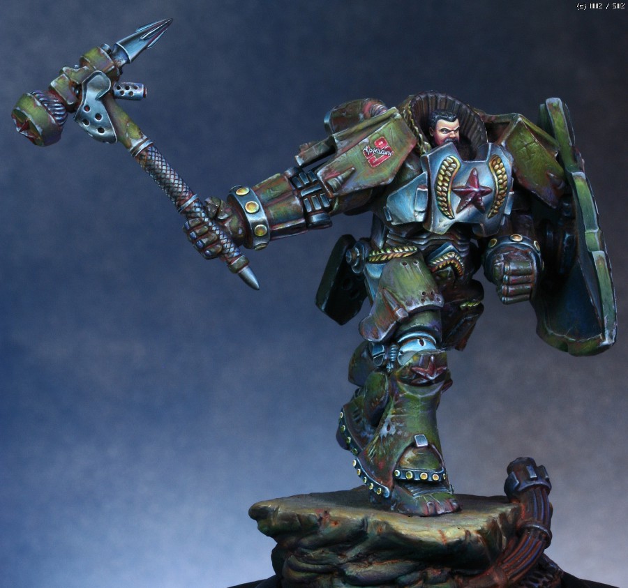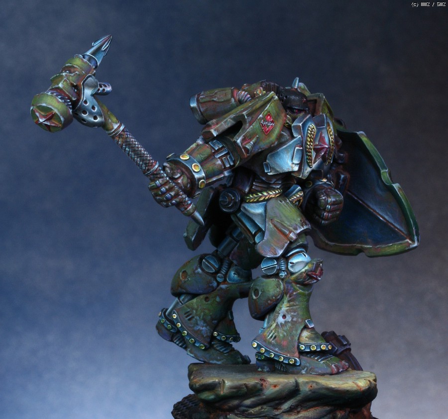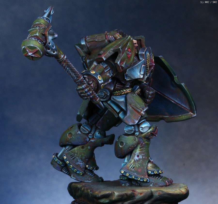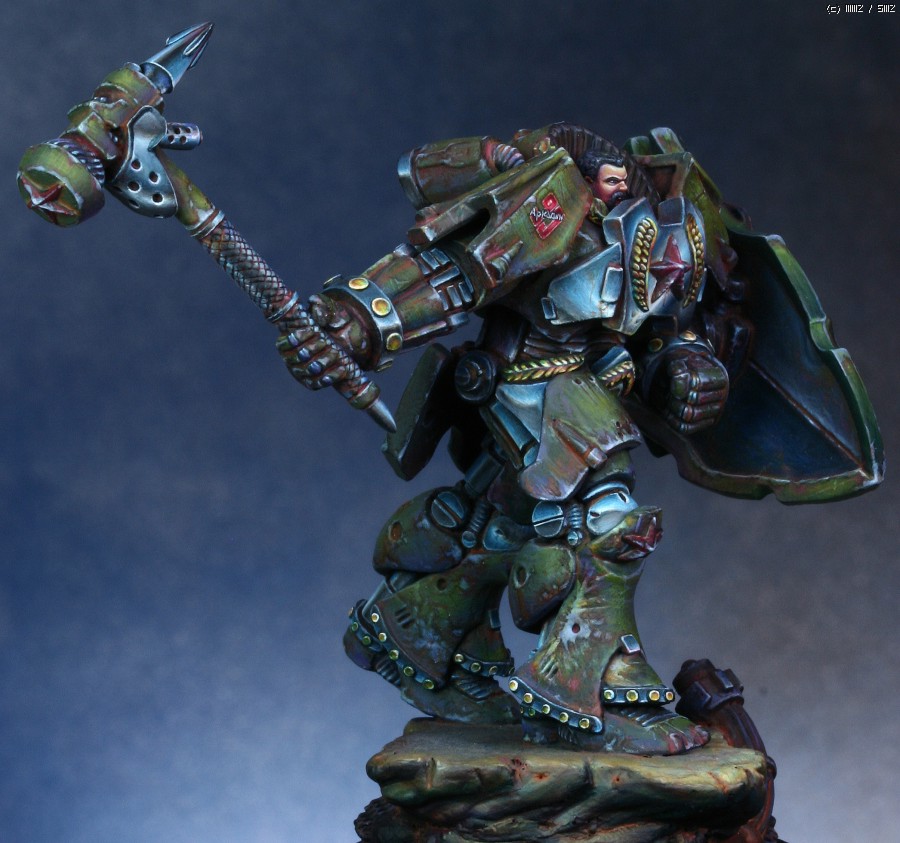 워해머의 스페이스마린을 모티브로 디자인한 'Human Tank Arkady'라는 판타지 케릭터입니다. 지난번에 NMM을 적용해서 페인팅했던 판타지 인형과 같은 메이커의 박스아트용으로 작업했습니다.