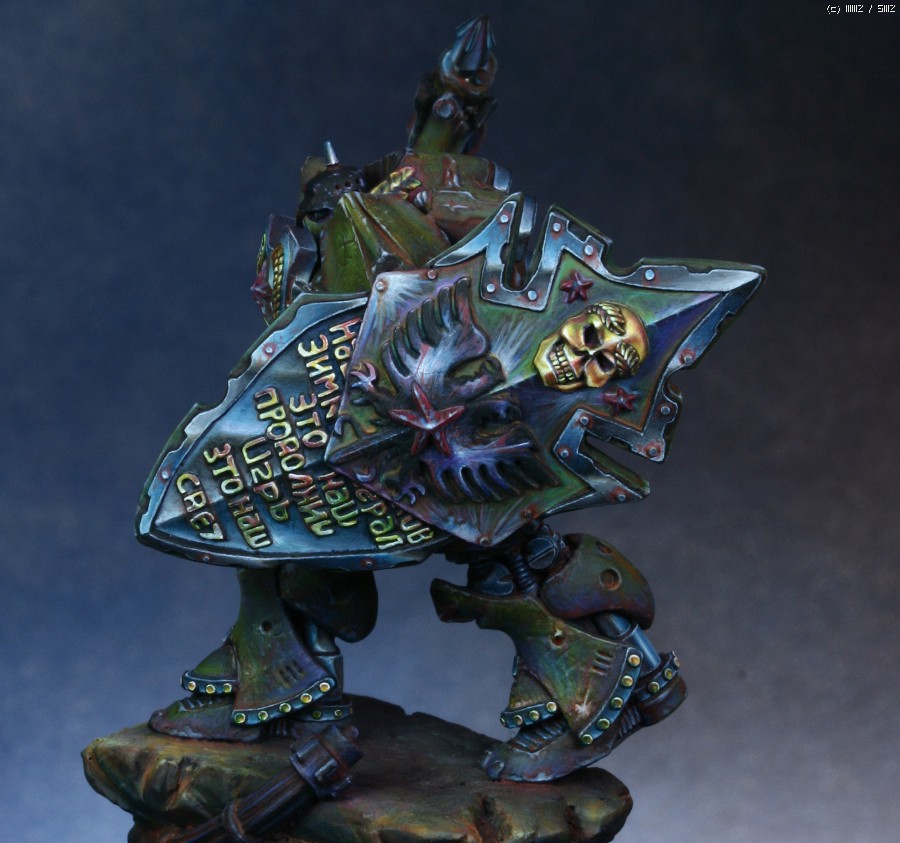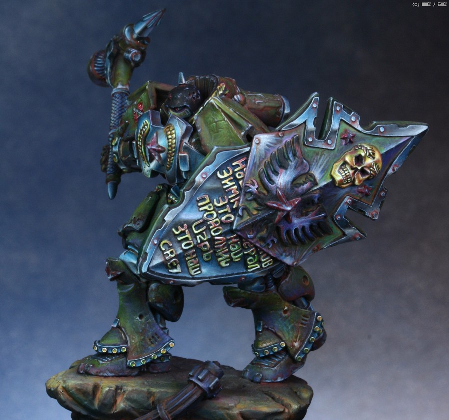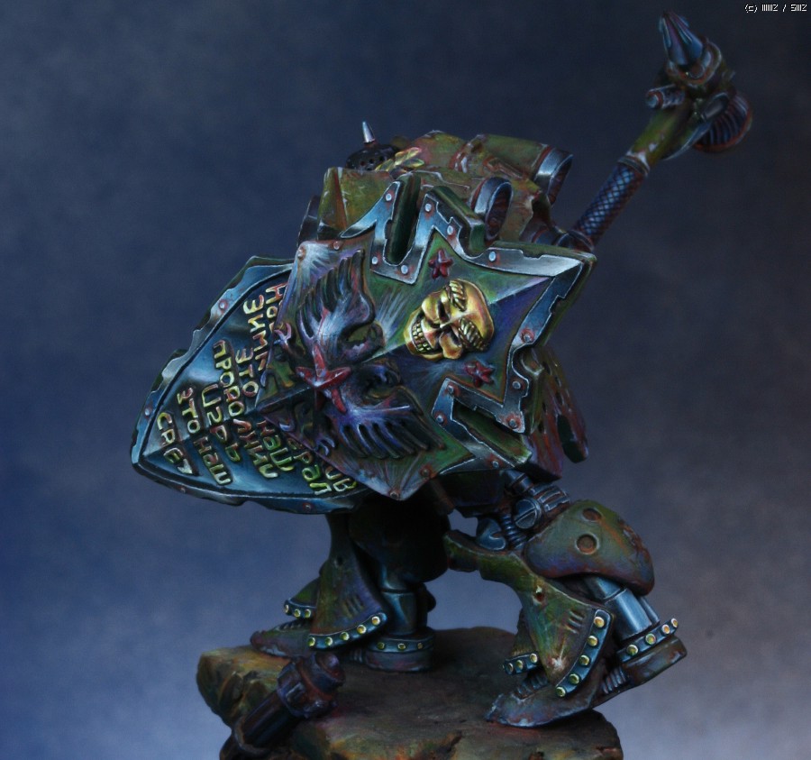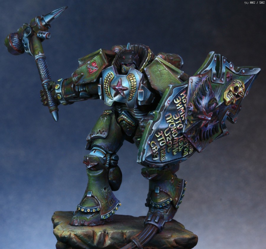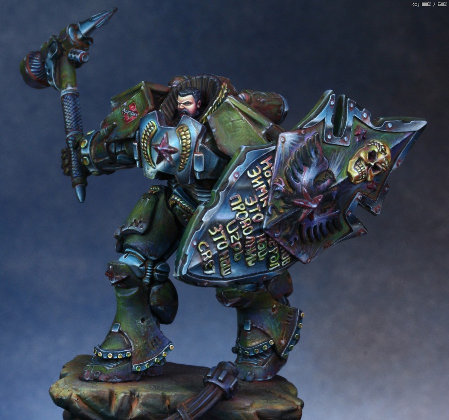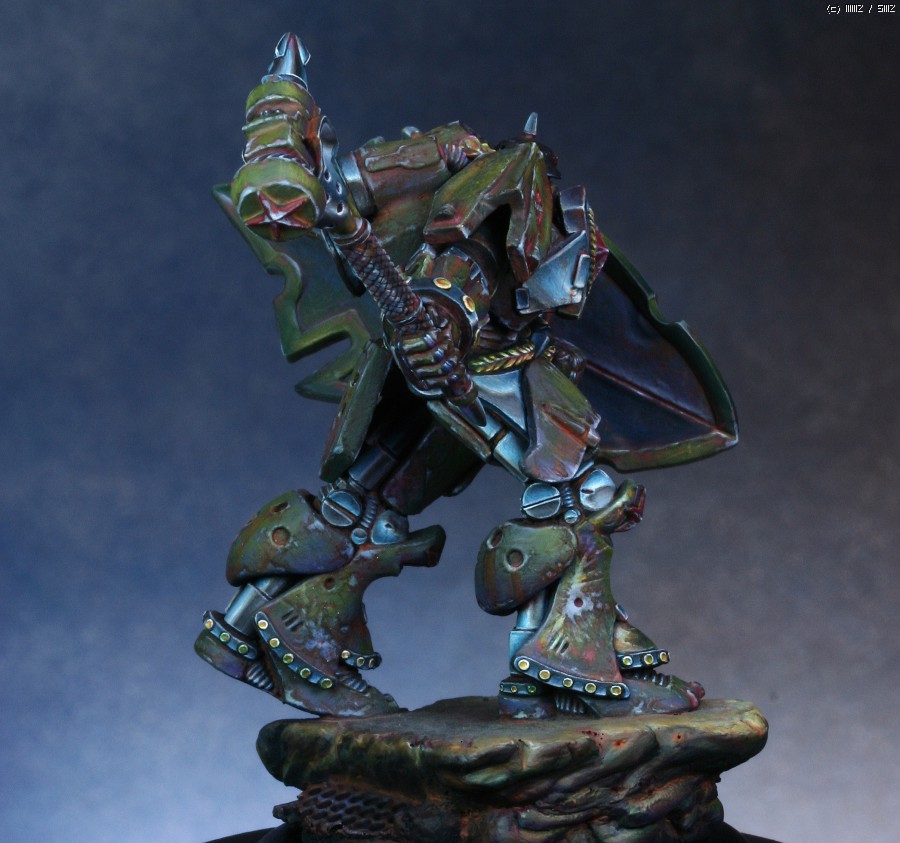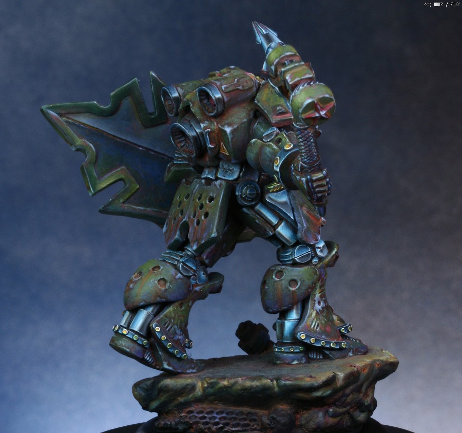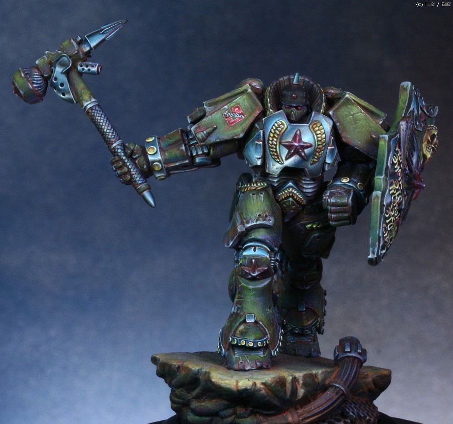 워해머의 스페이스마린을 모티브로 디자인한 'Human Tank Arkady'라는 판타지 케릭터입니다. 지난번에 NMM을 적용해서 페인팅했던 판타지 인형과 같은 메이커의 박스아트용으로 작업했습니다.