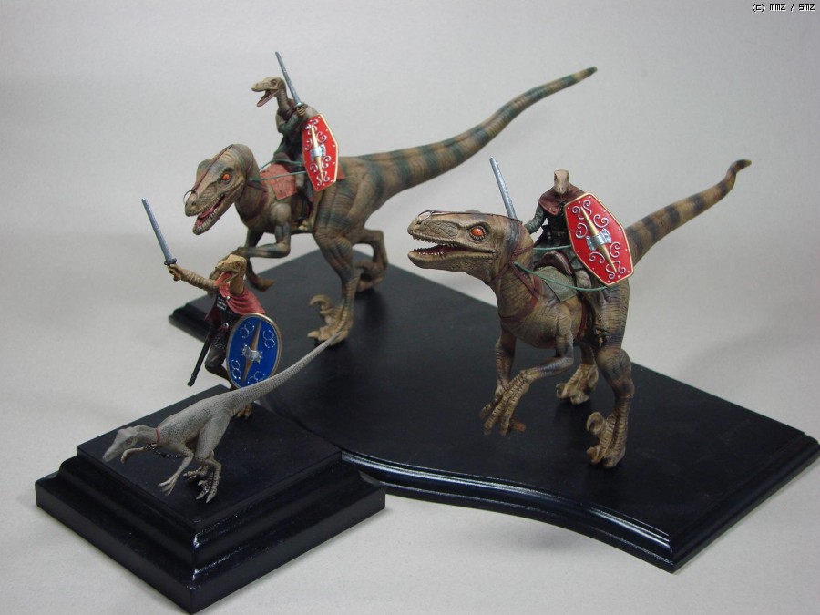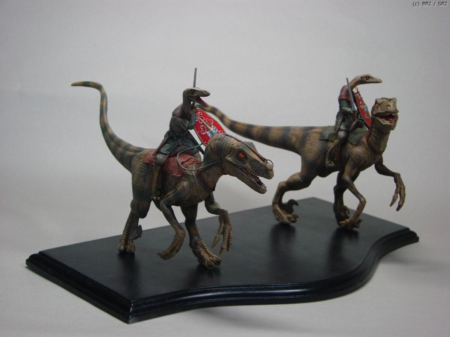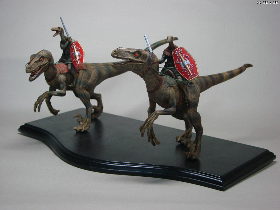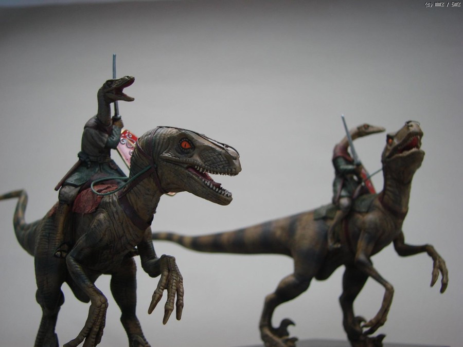 공룡은 레벨 1/25 쥬라기공원 시리즈의 벨로시랩터인데...영화에 등장하는 엉터리 랩터를 기준으로 만들어져서 덩치가 엄청나게 큽니다.(사실 벨로시랩터는 사람보다 작습니다. 건장한 성인 남성이라면 야구방망이로 때려잡을 수 있지요.)