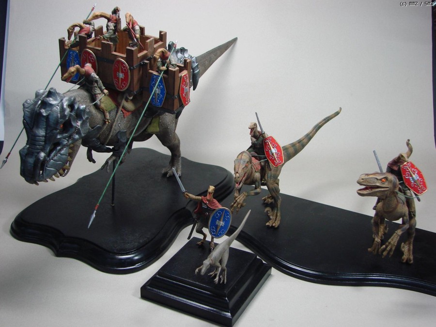성체 T-렉스의 최대속력이 달리기 쉬운 평지에서도 시속 30km(말의 절반 이하)를 넘지 못한다고 하니(맨몸도 그런데, 갑옷에 곤돌라까지 올려놓은 중용기병은...), 실질적인 기동전의 주역은 이 경용기병이 되겠네요.