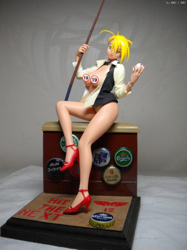 베이스의 문구는 레벨 1/48 B-25J 미첼에 들어있는 그 데칼입니다. 알파벳 철자를 약간 바꾸어서 당구를 연상시키는 문구로 적절히 바꿨습니다. (당구판에서 "First Benito, Next Hirohito"는 아무래도.... ;;;) 맥주 뚜껑들은 한병 한병 마시면서 모아둔 실물입니다. 제 입맛이 싸구려인지 버드와이저가 제일 낫더군요.