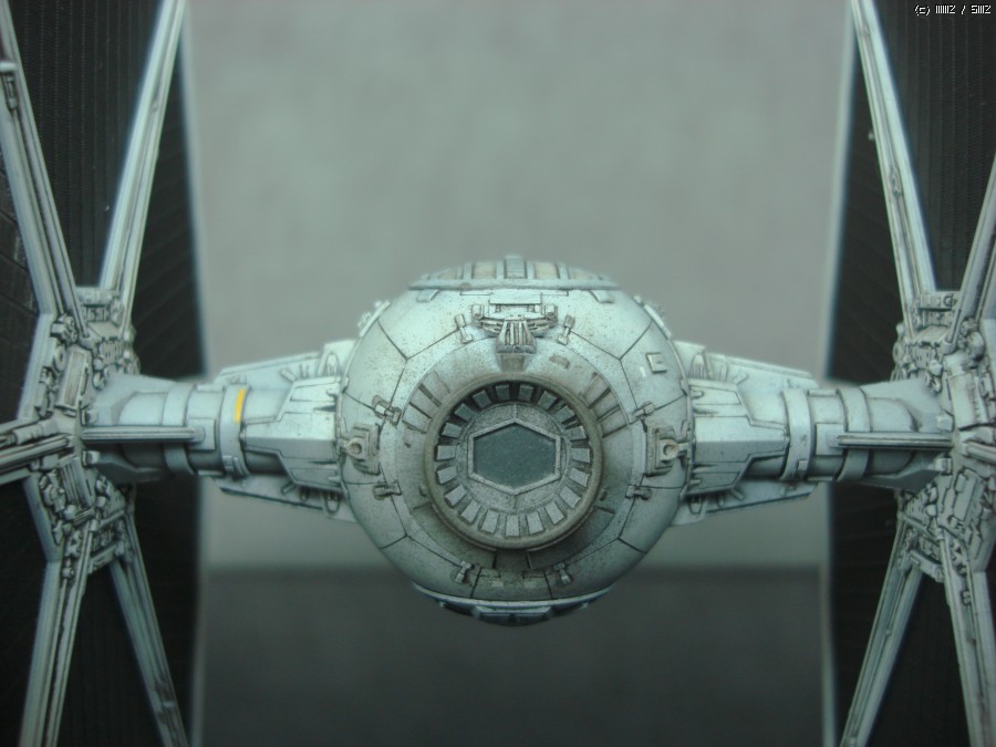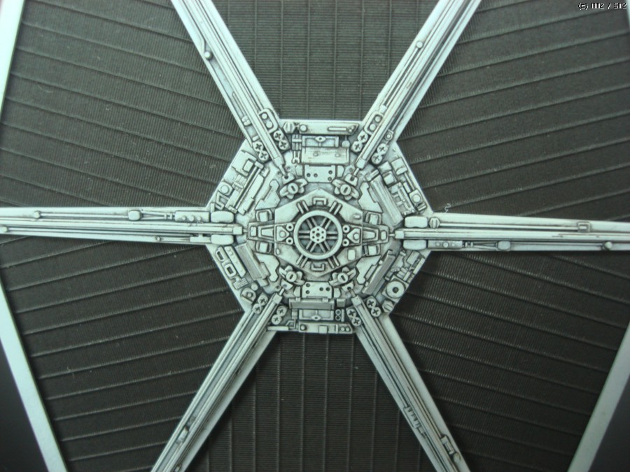 타이 전투기의 가장 큰 특징인 태양열 전지판 날개 디테일 입니다. 파인몰드사 다운 빼어나 디테일을 보여주고 있습니다. 검정 에나멜을 묽게한 워싱으로 먹선을 넣어주어서 음각과 양각의 조화가 연출하는 디테일을 더 돋보이게 해주었습니다.