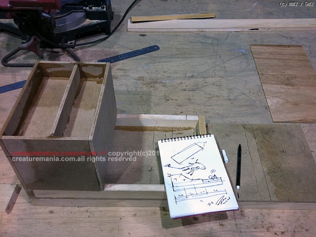 베이스 입니다. 머리속에 상상한 구도를 만들기 위해 약간의 스케치를 바탕으로 목제 베이스 작업을 합니다.