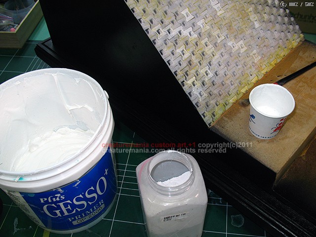 젯소는 수용성 재료이므로 가세이와 수성 조색제를 사용하여 기본 색을 칠할 물감을 조합 했습니다.