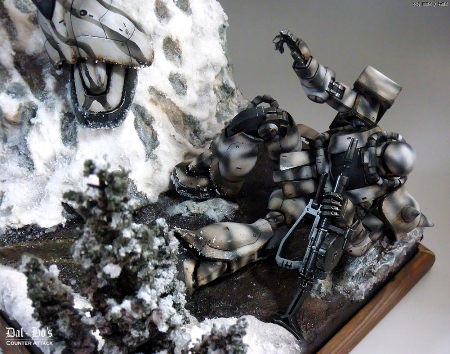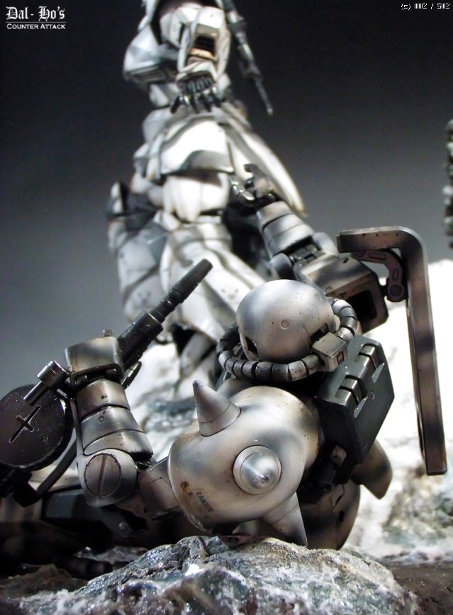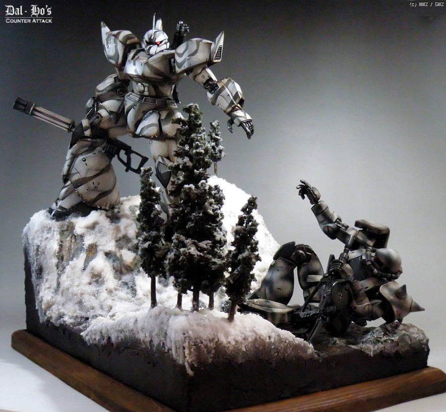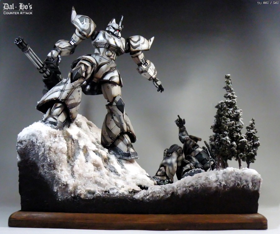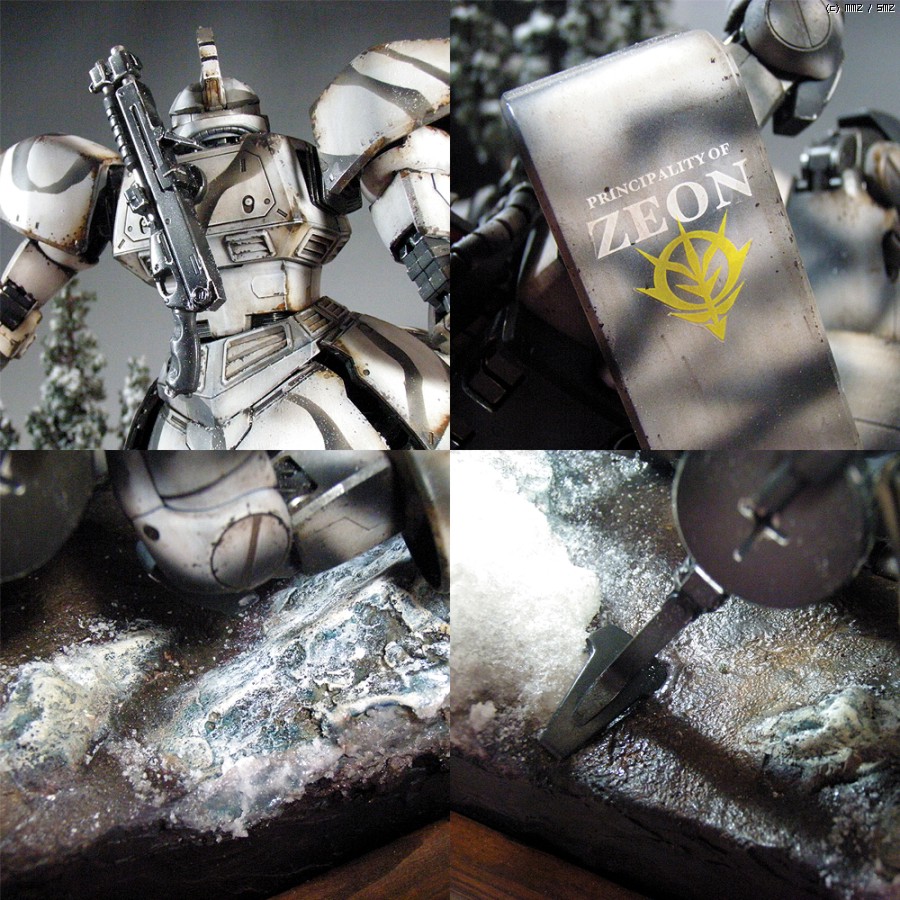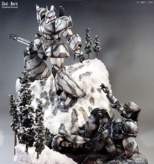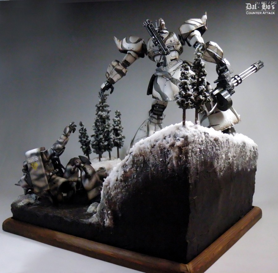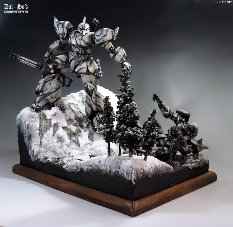 디오라마 컨셉은 제대말년 겔병장(?)이 눈밭에 미끄러진 자이병(?)에게 손을 내밀어 주는..