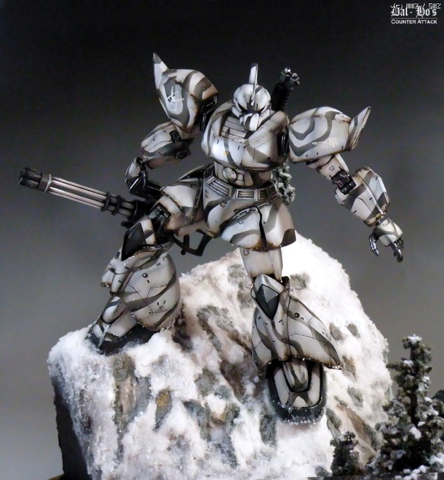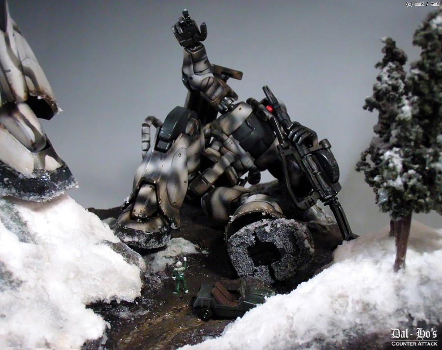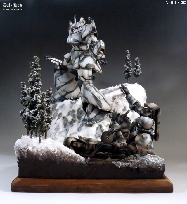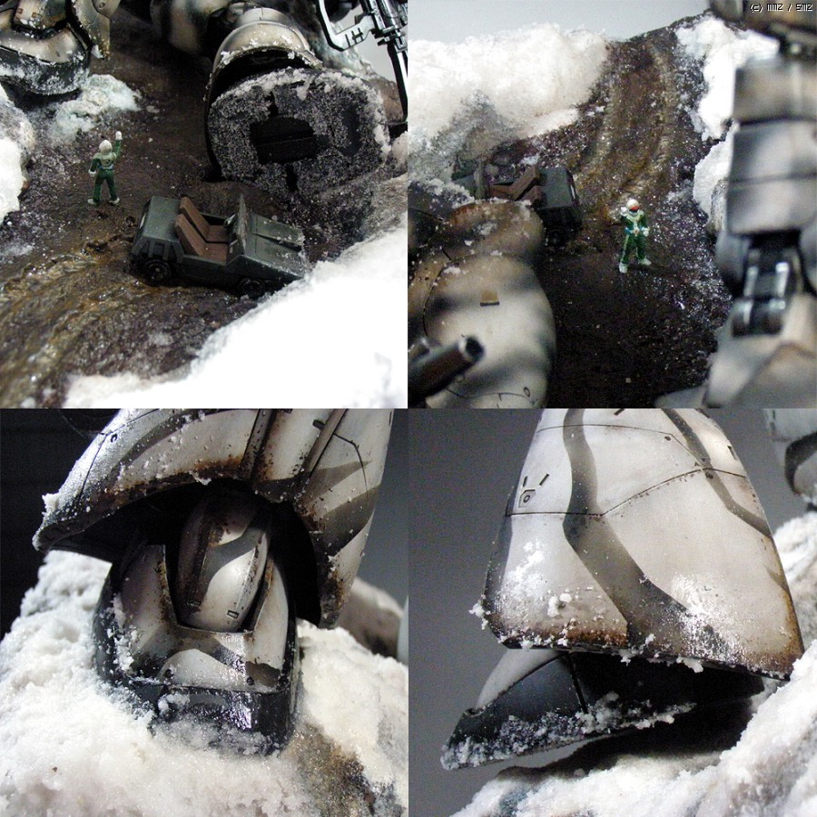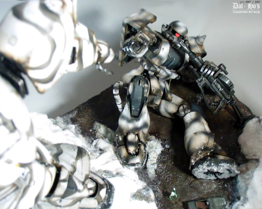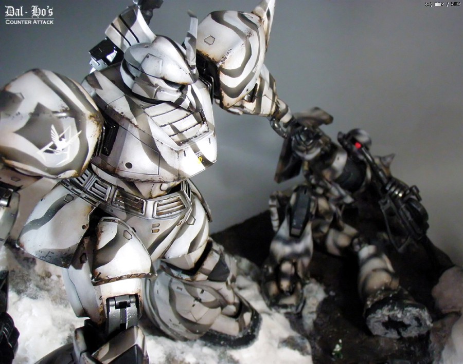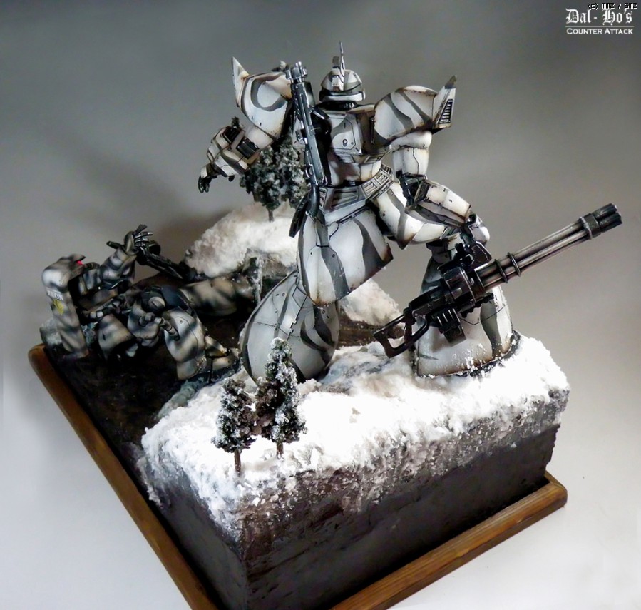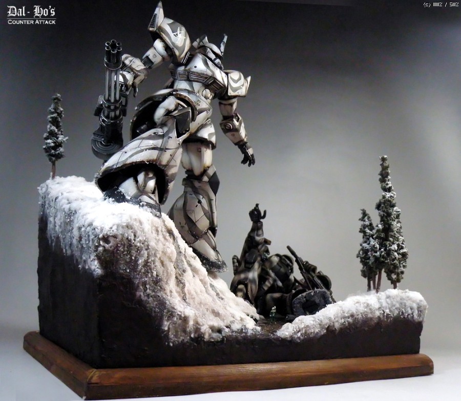 디오라마 컨셉은 제대말년 겔병장(?)이 눈밭에 미끄러진 자이병(?)에게 손을 내밀어 주는..