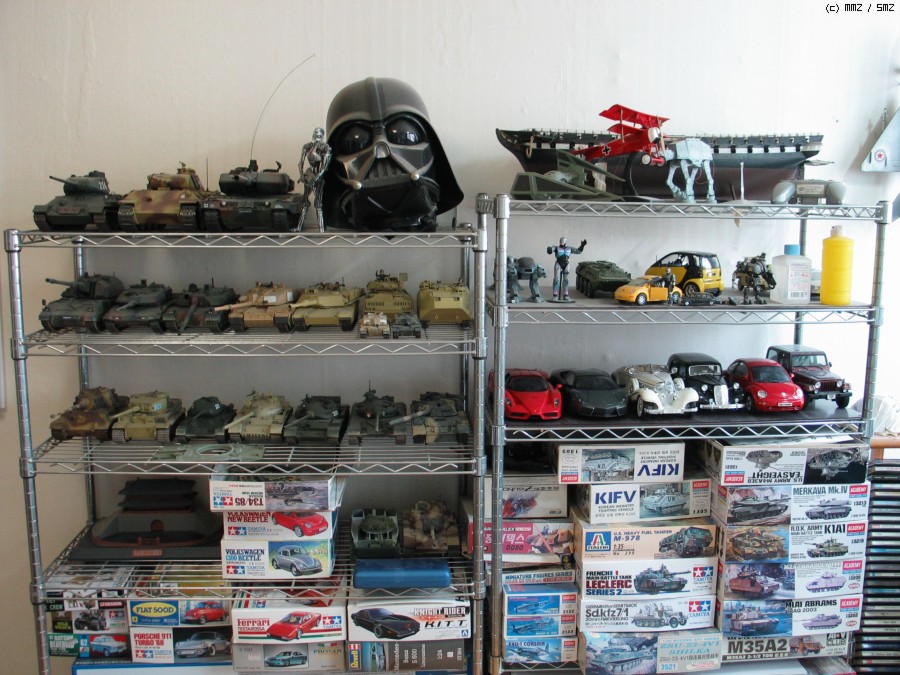 철제랙 맞은편에 걸어놓은 총들.... 대부분 저렴한 국산들이고 저 위 권총이 마루이 가스 권총이라 제일 비싸요... 언젠가는 저 총들을 실물같이 웨더링을 하려고 하는데, 특히 AKM은 후세인 하사품처럼 번쩍번쩍하게 금장이나 은장으로 생각중입니다...^^