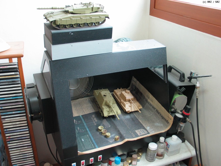 랙 옆 스프레이 부스. 지금은 둘째 애 때문에 먼지만 수북히...