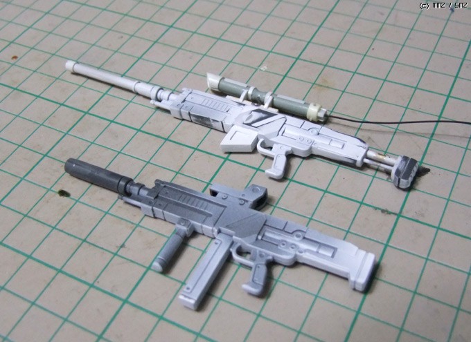 동봉된 머신건을 한정은 스나이퍼 라이플로 한정은 유탄발사기 장착형으로 작업해봤습니다.