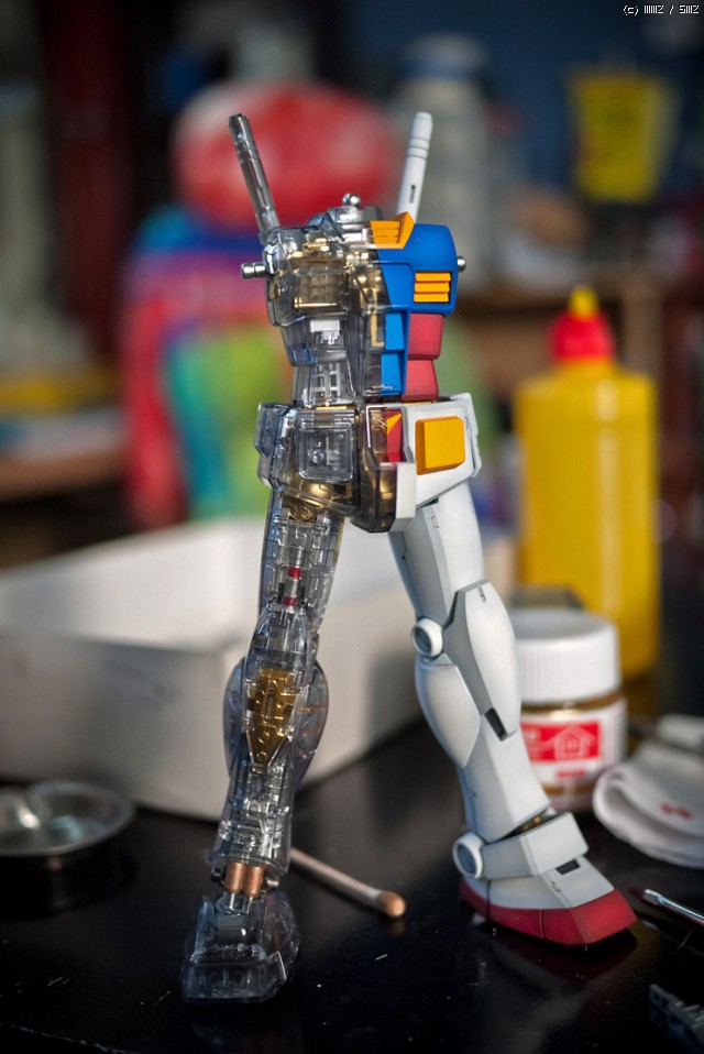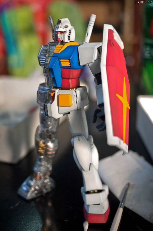 MG 퍼스트 건담 2.0 메카니컬클리어를 마스킹 해서 반쪽짜리 속보이는 건담을 만들어봤습니다 ^^;