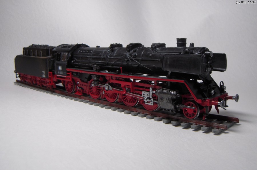 이탈레리의 HO스케일(1/87) BR 41 기관차 입니다. 꽤 오래전에 나온 걸로 아는데 조립성은 나름 괜찮은 편이지만 거스르미가 많고 몰드가 불만인 부분이 있지만 서스펜션 부분은 꽤 정밀한 몰드를 가지고 있어 도색을 하고 나니 정밀해 보이네요. 예전에 아리이의 동일 스케일 기관차를 샀다가 만들다 말고 팽개친 적이 있는데 모터라이즈의 장난감 수준이었습니다만 이 키트는 그 것 보다는 훨 낫네요.