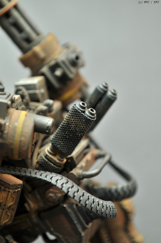 지대공 무기가 필요해서 급~생각한것이 발칸!!! 2개를 구해서 양쪽에 달아줬습니다. 여기저기 말도안되는 부품을 붙여놨습니다. 자세히 보시면 "아~이거구나!" 라고 바로 알아보실겁니다.