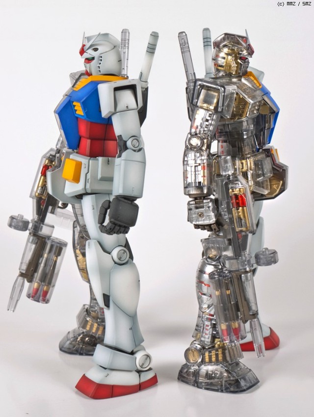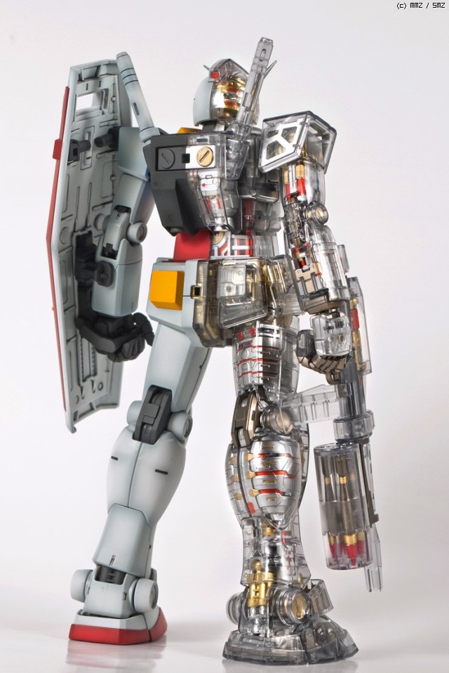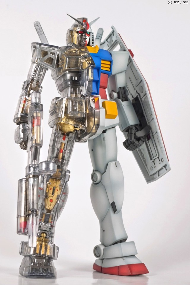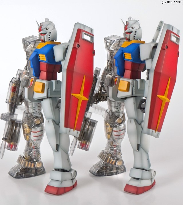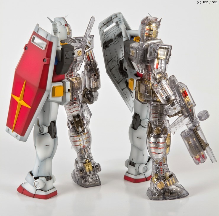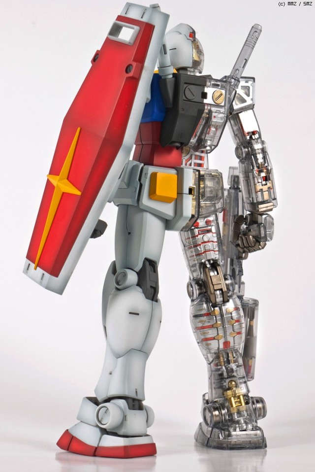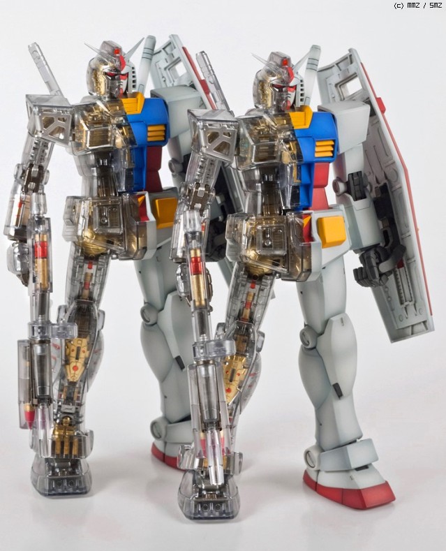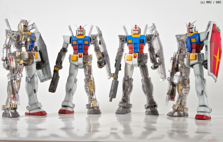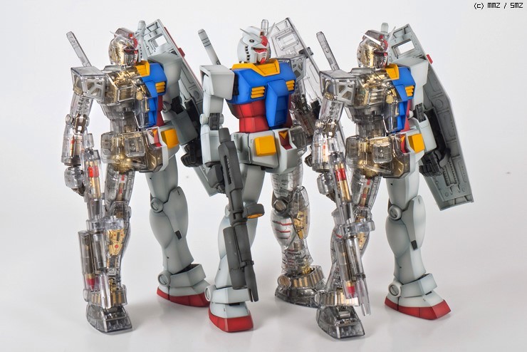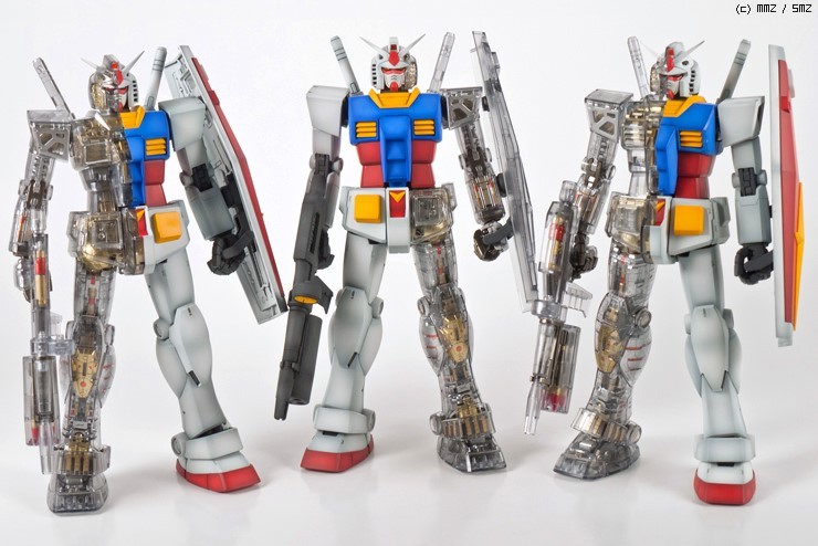 가운데는 남은 클리어 부품으로 만든 팔다리만 클리어인 건담입니다 ^^;
