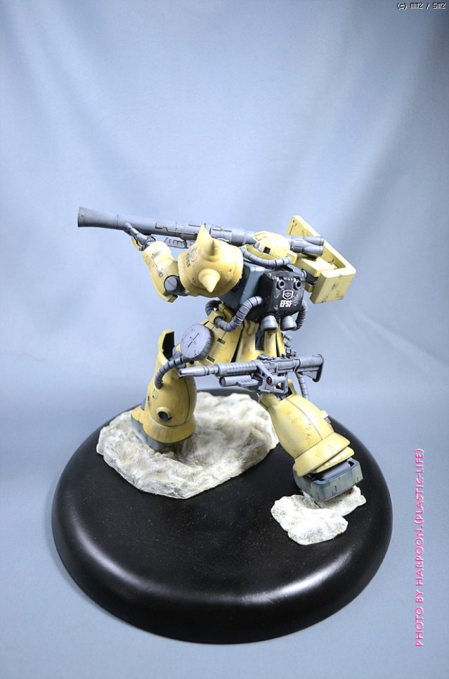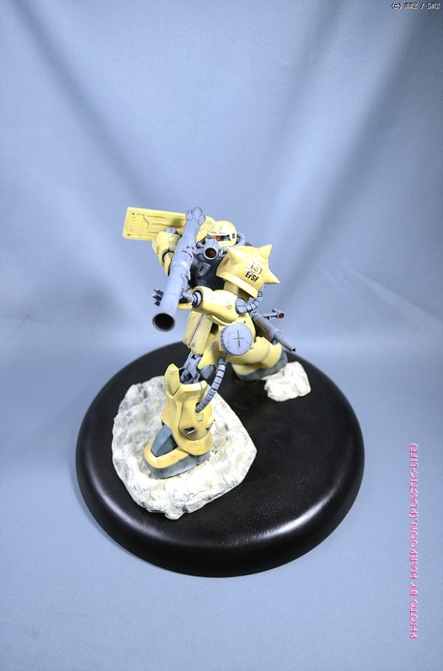 반다이 마스터그레이드 자쿠F-2형 연방군 사양입니다. 지난달 동호회 숙제로 완성한 녀석입니다. 오랜만에 고증이랑은 상관이 없는 녀석이라 가볍게 작업을 했습니다. 오리지널 컬러에 비해서 좀 더 진하게 사막 느낌이 나는 도색을 해보았습니다.
