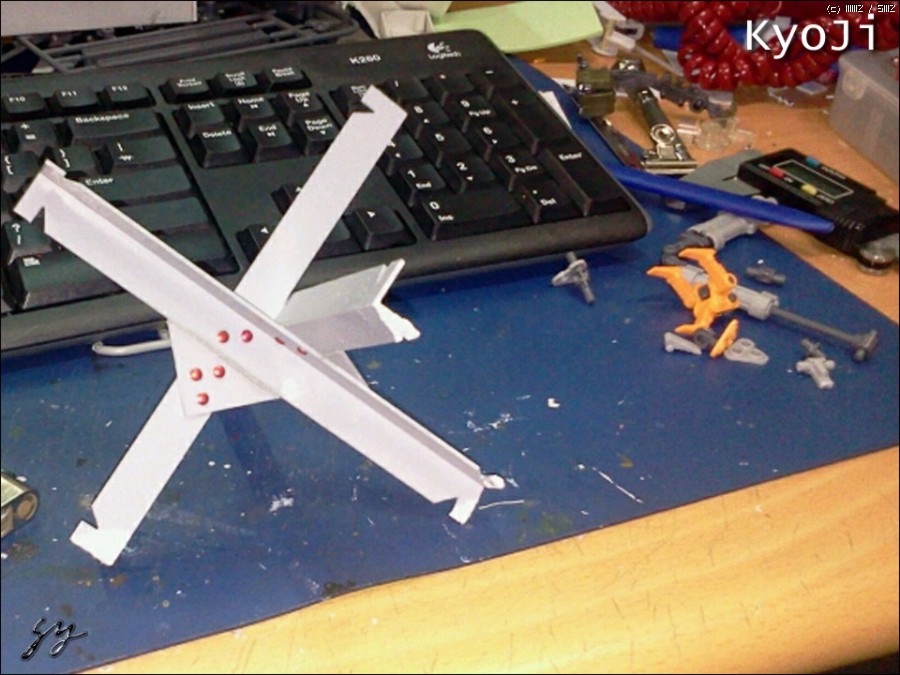 양팔은 손과머리 암액세서리의 크레인암으로 바꾸어주고 왼손의 레이저는 왼쪽 등으로,