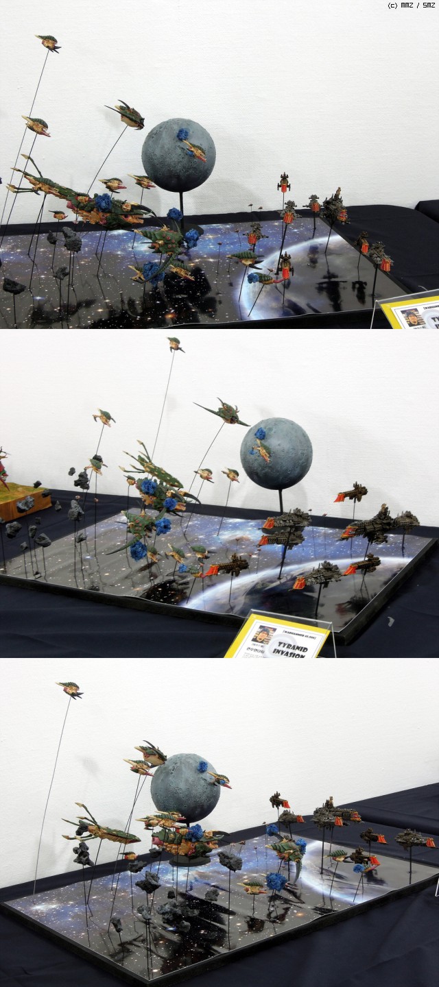 워해머 40,000의 우주 함대전 게임인 [배틀플릿 고딕]의 [타이라니드]함대와 [임페리얼 네이비]함대의 함대전을 표현하였습니다.