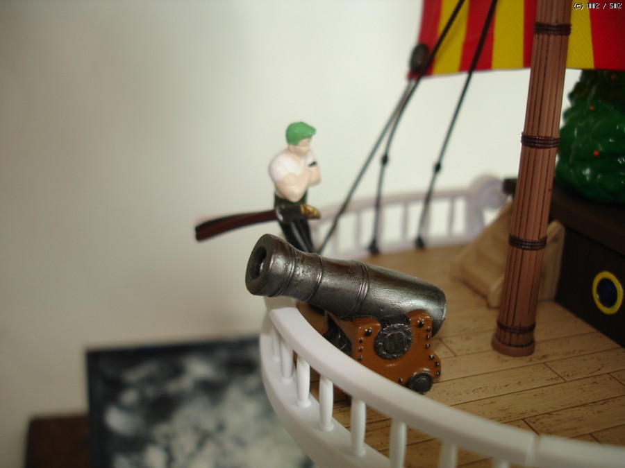 그러나 플라모델을 취미로 하고있는데 도색을 안할수는 없고,해골이 들어있는 흰돛만 빼놓고는 모두 도색 했습니다. 흰돛에있는 해골 그림은 데칼 붙이다가 실수로 날려 먹고 제품에 포함되어있는 스티커로 붙였습니다.
