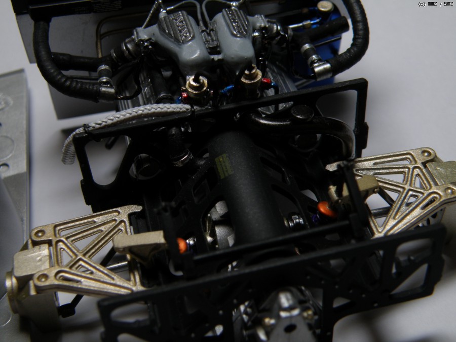 제작은 엔진룸쪽을 좀 많이 건드렸습니다.이킷과 관련된 에칭이나 옵션이 전무하기에 대부분 황동판,에나멜선,곤충핀,굴러다니는 여러가지 재료로 표현 해주었구요.뷁끼 디스크는 고증 무시하고 자작,쇼버도 자작..대충 이정도입니다.