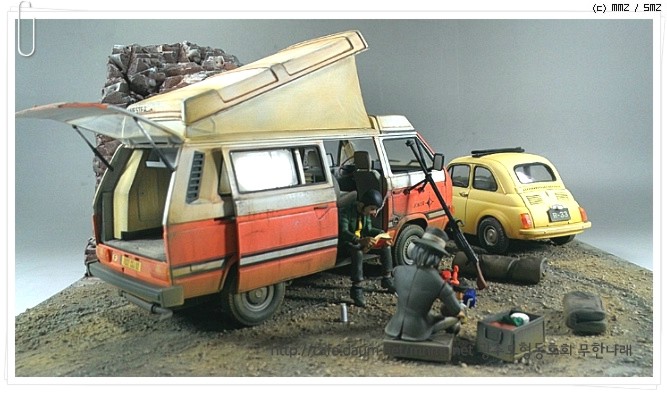 캠핑하는 장면을 연출하려고 폭스바겐 캠퍼를 별도 제작해봤읍니다..
