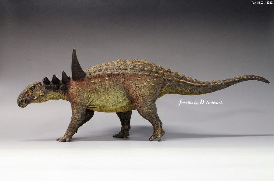 이번 것은 사우로펠타(Sauropelta)라는 갑옷공룡입니다. 온몸에 뼈로 된 장갑과 어깨에 매우 크고 날카로운 뿔을 가진 것이 특징... 1/15 스케일에 전체길이는 43cm로 꽤 큰 편입니다.