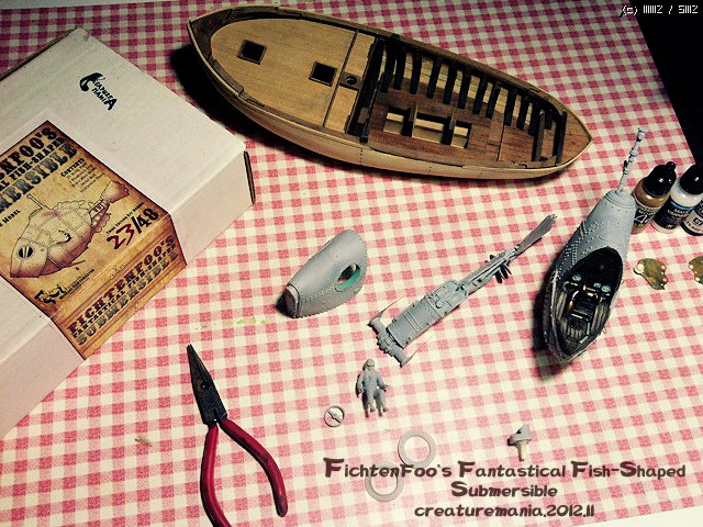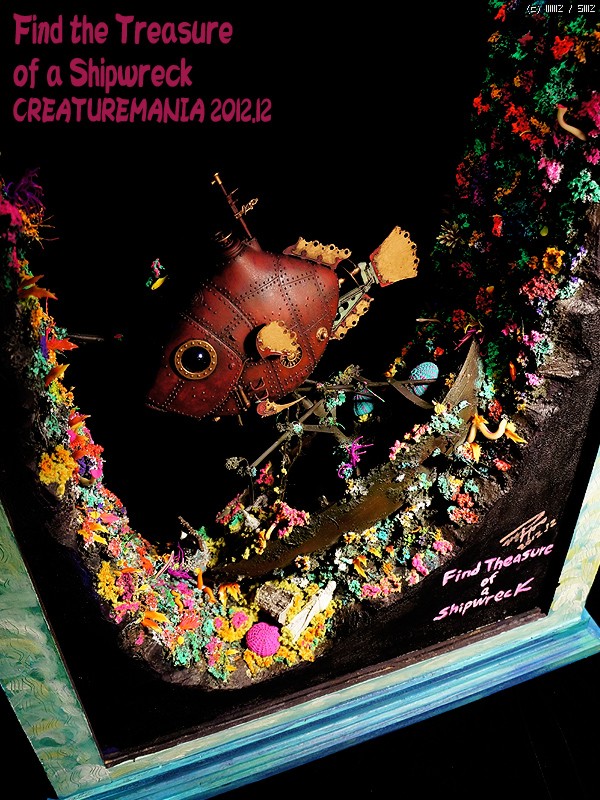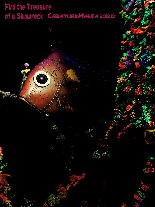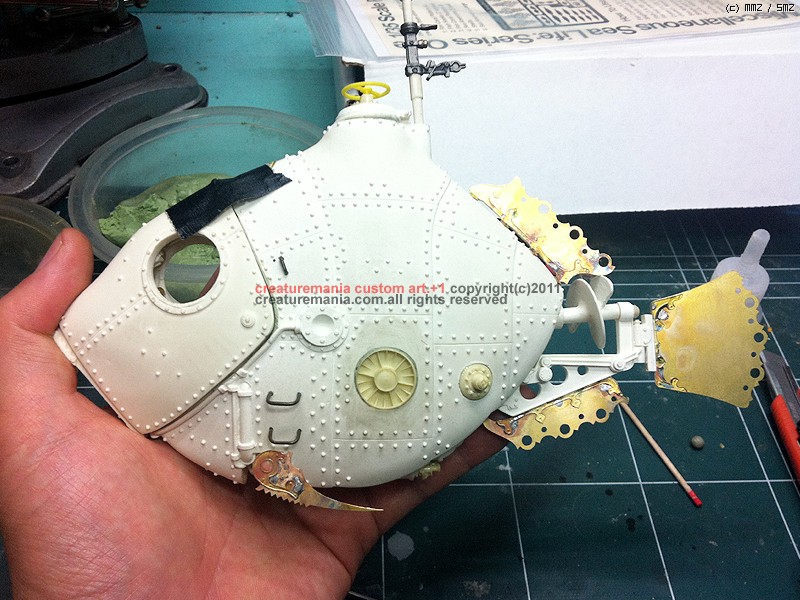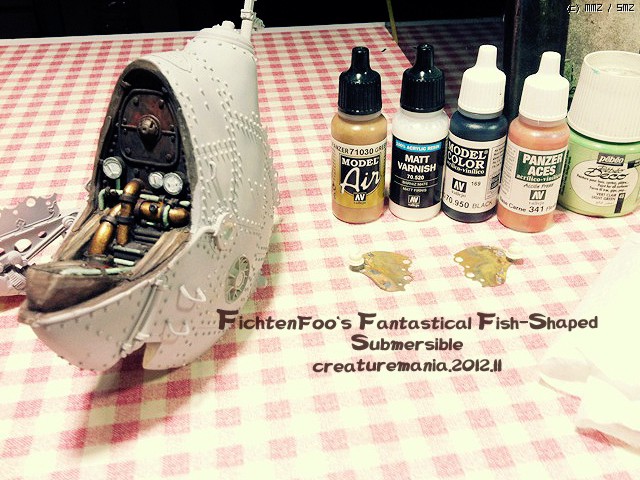 이사진에 나오는 잠수함 등 부분의 흰색 점은 블랙 라이트에서만 반응하는 스프레이를 사용한 예입니다. 다른 사진 에서는 이 사진 처럼 등 부위의 흰색 점이 사라져 있는 것을 찾으실수 있을것입니다. 이 스프레이는 일본에서 제작된 특수한 용도의 스프레이 입니다.