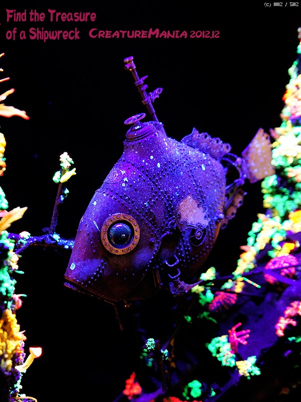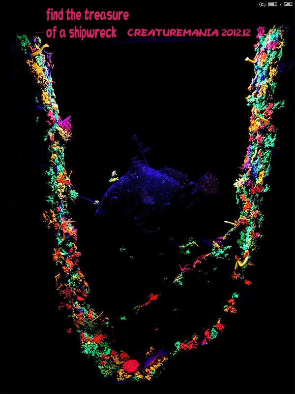 이 사진의 보이는 산호는 형광 스컬피를 리퍼에 넣어 모양을 만든 다음 굳힌 것 입니다.