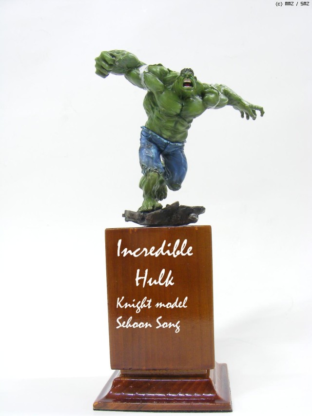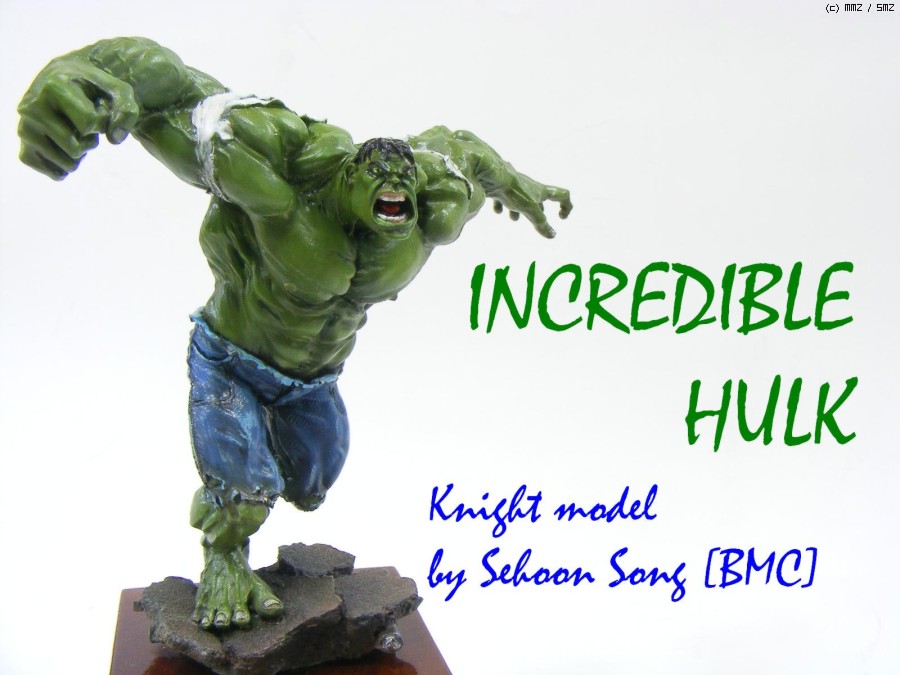 안녕하세요. BMC 송세훈입니다. 나이츠모델의 헐크입니다. 동호회숙제로 만든 것인데 원형의 조형이 정말 휼륭했습니다. 울퉁불퉁한 근육의 결과 혈관까지도 섬세하게 조형되어 있습니다. 베이스는 네오모델즈제품인데 피겨에는 안성맞춤인 것 같네요.