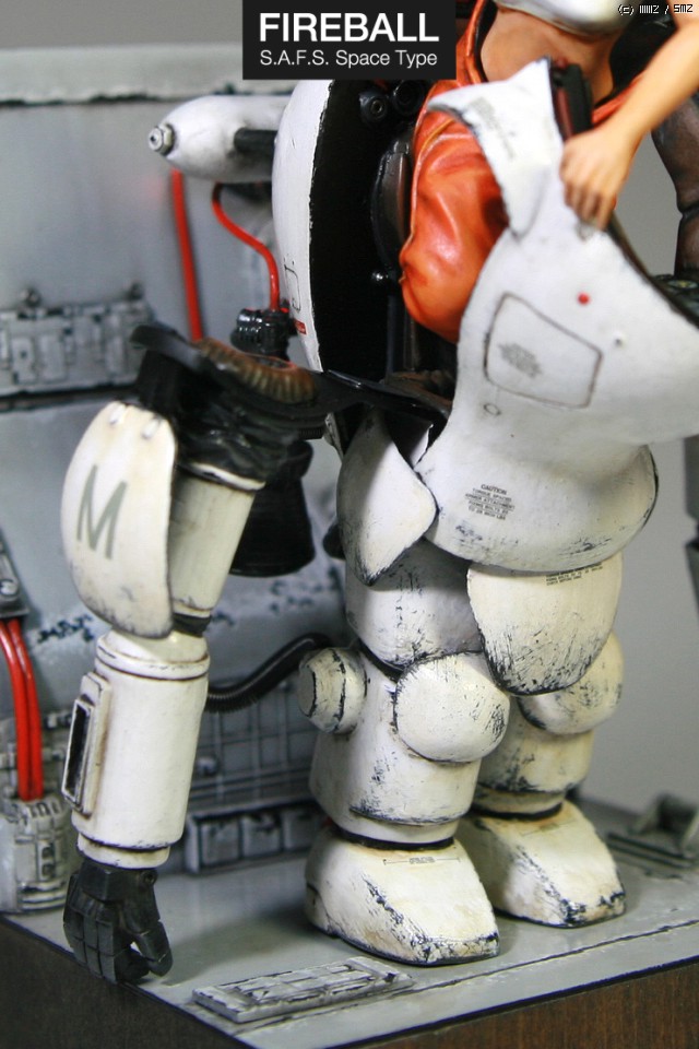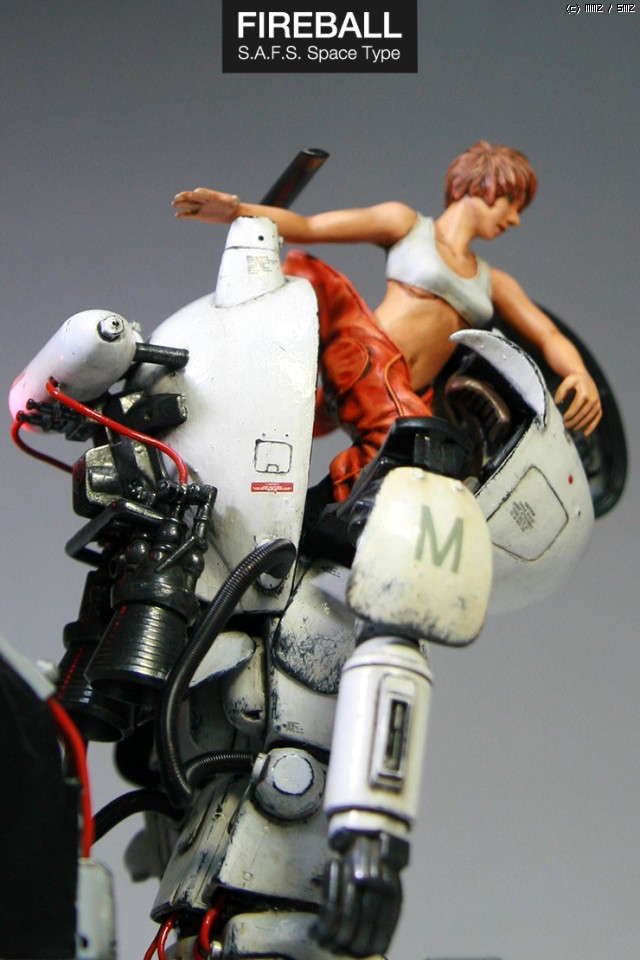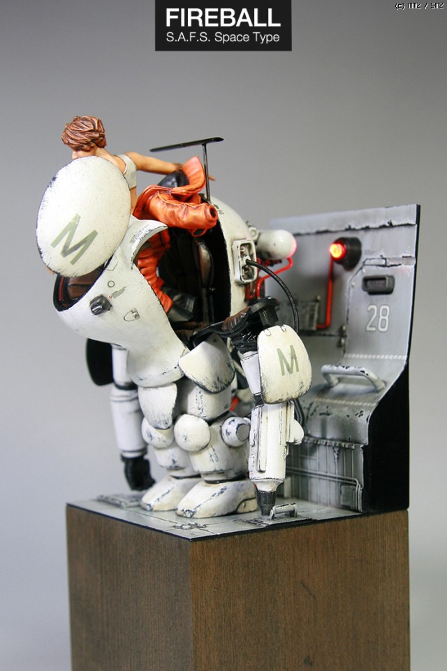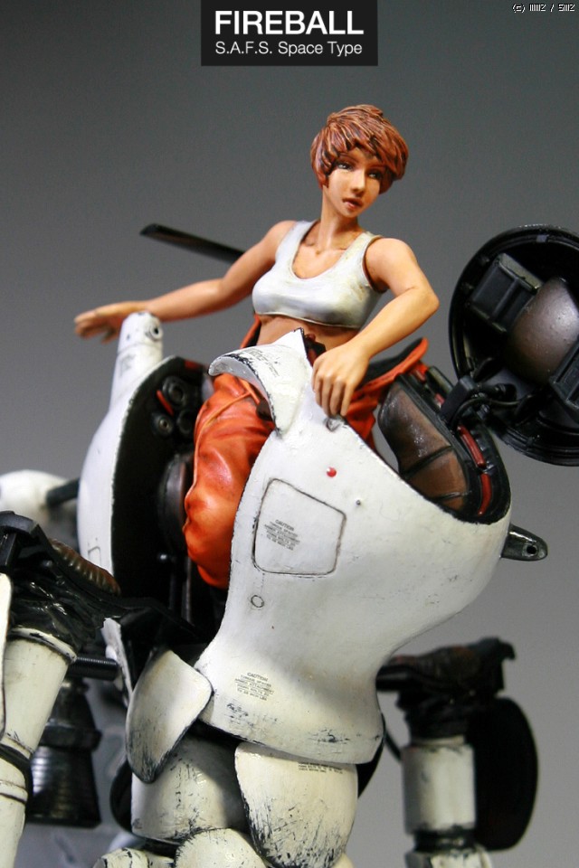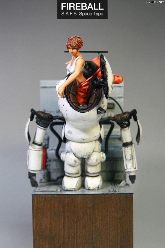 우주선 격납고에 착륙한 Fireball의 해치를 열고 나오는 여성파일럿입니다.