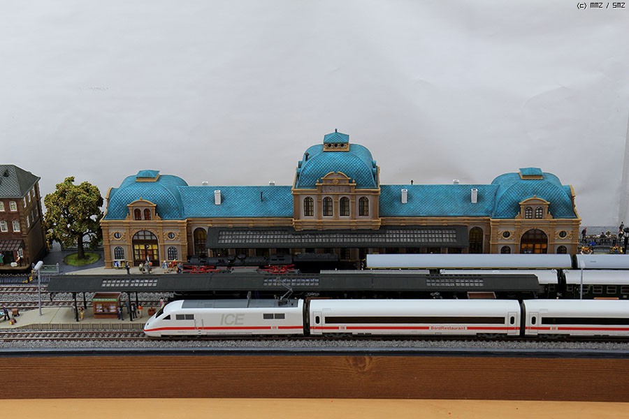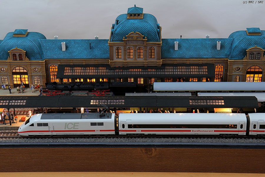 독일 바덴 바덴 기차 역 을 메인으로 디오라마 모듈 을 제작 하였습니다. 플랫포옴 과 빌딩에는 LED BAR 를 넣어 주었습니다. 가로등 은 독일 Faller, Viessmann, Brawa 제품 들 을 사용 하였습니다. 인형은 너크와 프레이져 로 구성 약 400명 이상 올려주었습니다.