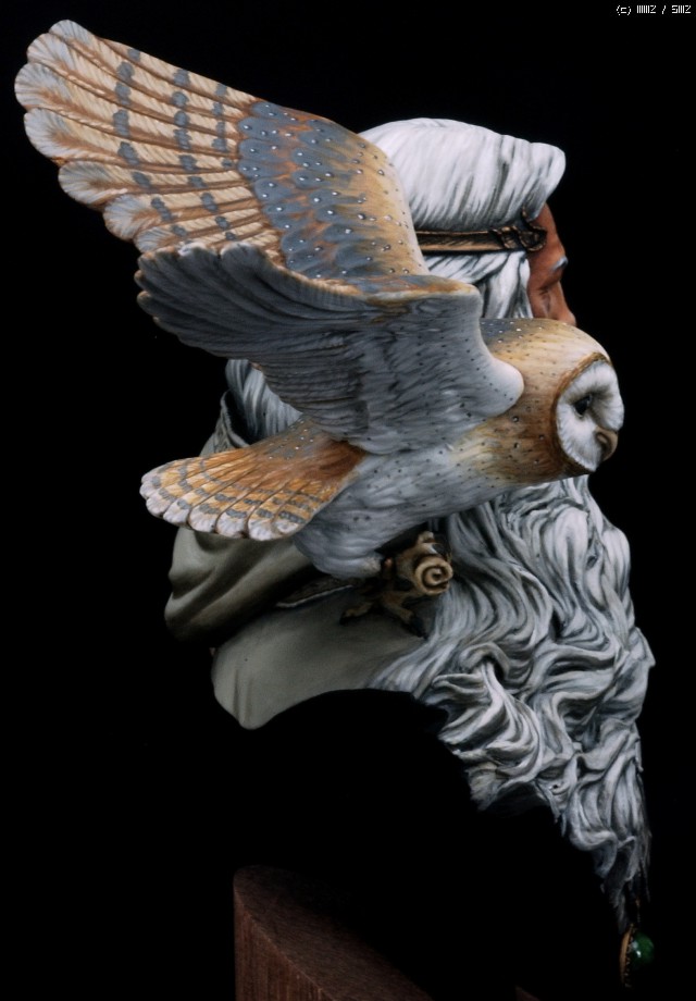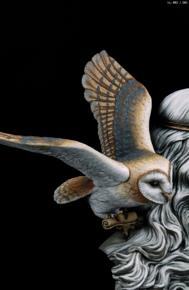 인형과 아울러 어께위에 "헛간 올빼미"(Barn Owl) 도 멋지네요.