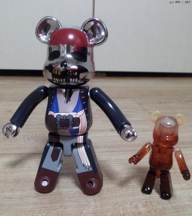 오른쪽의 작은 베어브릭은 시중에서 많이 볼 수 있는 100% 크기의 베어브릭입니다.