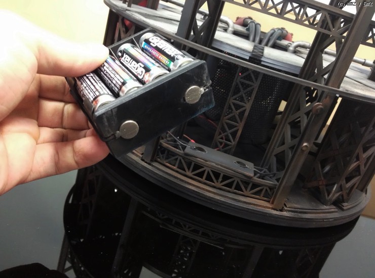 자석으로 붙어있는 덮개를 떼어내면 건전지 케이스가 보입니다.