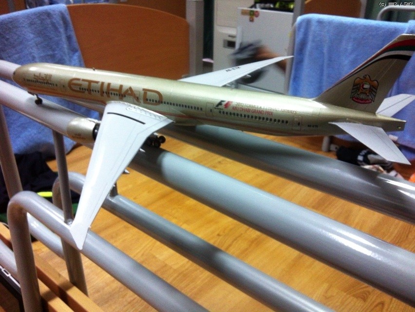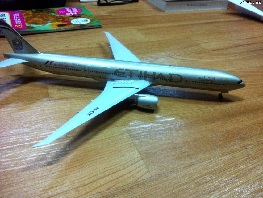 타미야 TS-75 샴페인 골드로 도장했습니다. 이 기번이 포뮬러 도장인지는 모르겠으나...고증 무시하고 봐주시면 감사하겠습니다. 하세가와 777-300킷에 별매데칼과 GE90-115B엔진, 윙팁 사용했습니다.