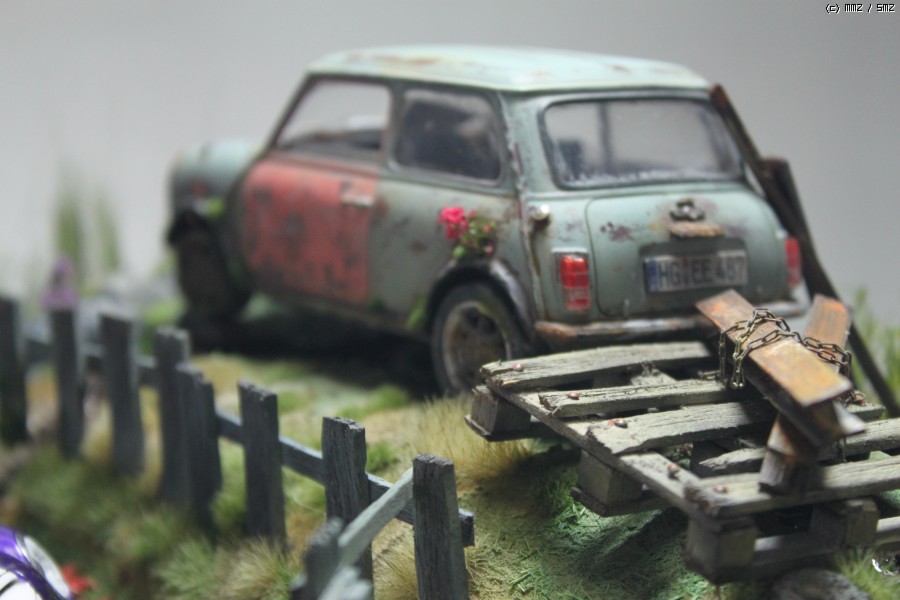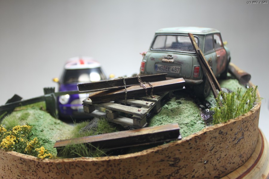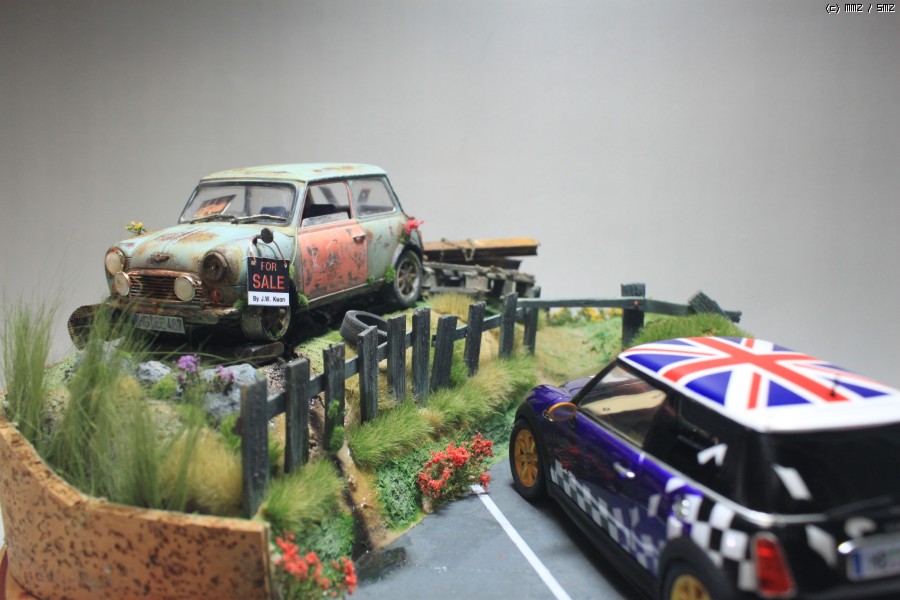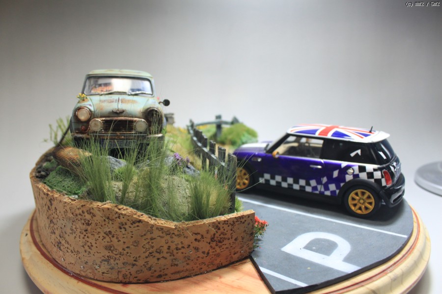 작품은 영화관에서 본 광고에서 모티브를 따 왔습니다. 뉴 미니쿠퍼가 멋지게 드라이브하고