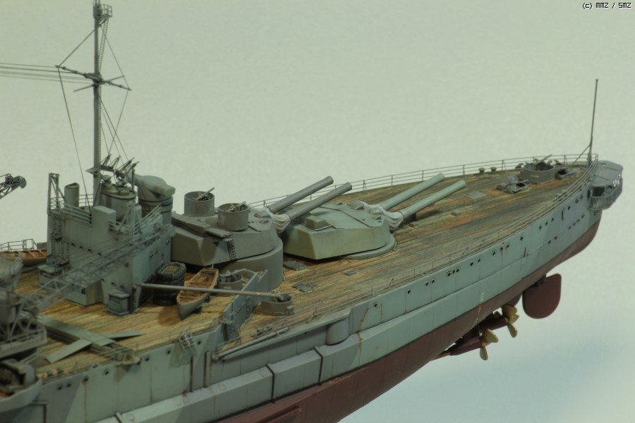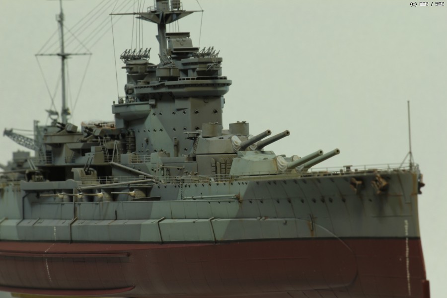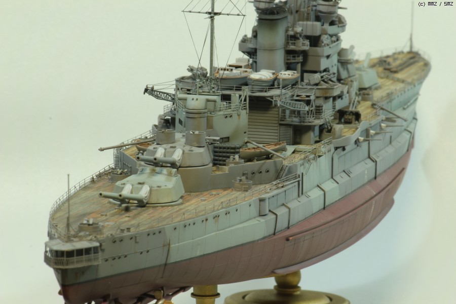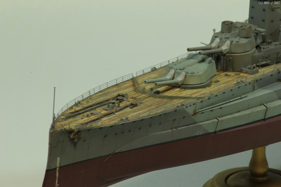 에칭부품, 목갑판 등이 포함된 아카데미의 1/350 HMS Warspite premium edition kit으로 작업했습니다. 마스킹 수고를 조금이라도 덜기위해 도색만 1943 version으로 했고, 갑판 낮추기, 헐 패널라인 파기, 함포 각도 조정하기, 목갑판 도색, 건터브 자작 등 몇몇 추가 작업을 시도해 보았습니다.