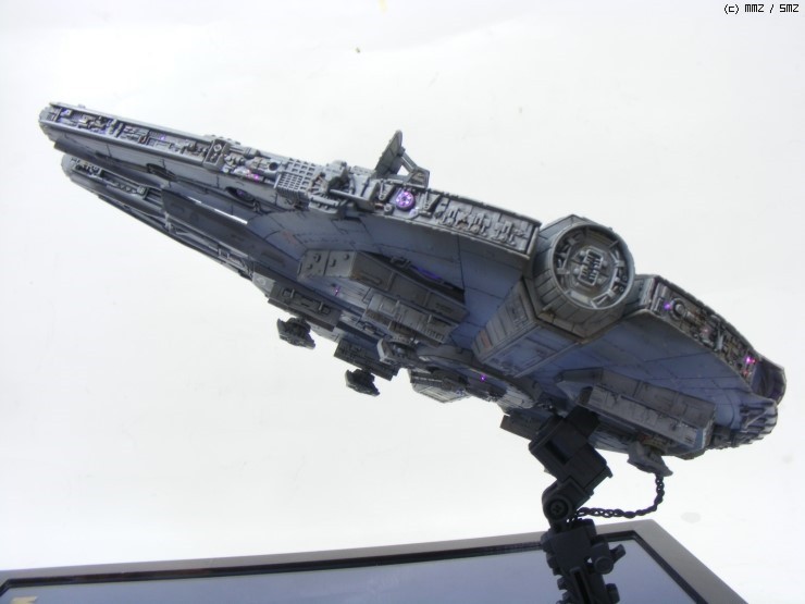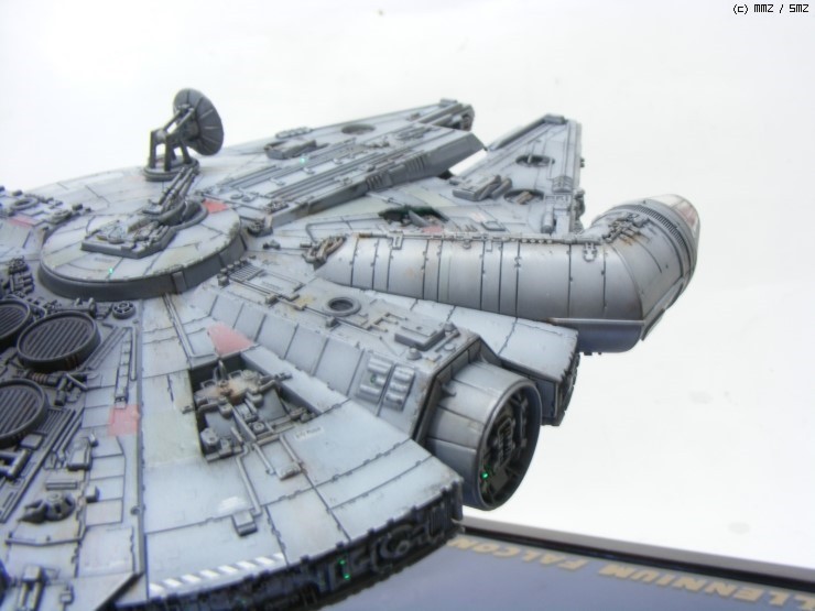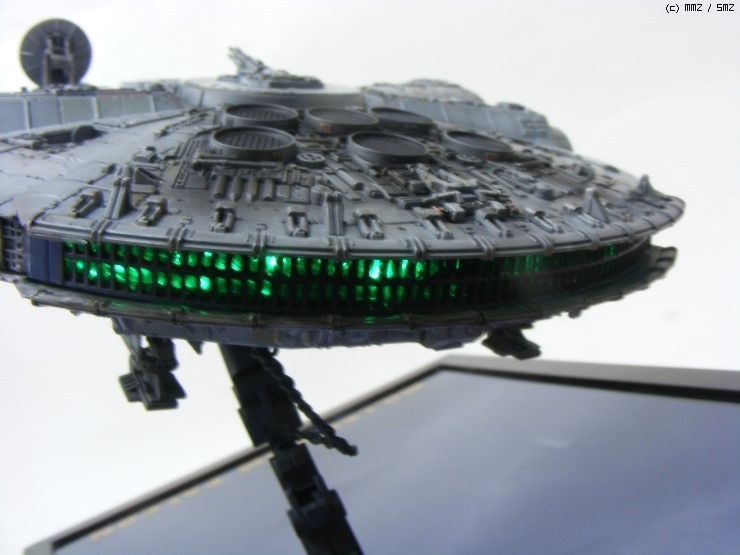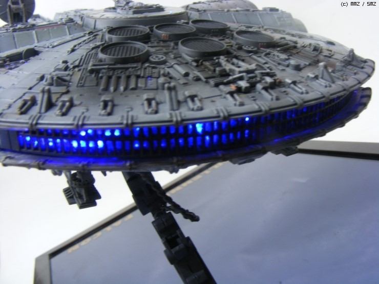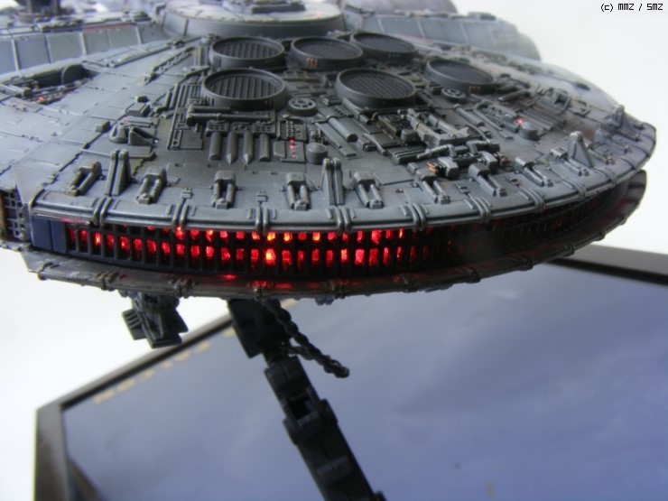 이번 작업은 144 파인몰드 밀레니엄 팔콘 입니다.명품킷 답게 만드는 내내 재미있었던 작업이었습니다. 컨셉은 외향은 오래된 기체이나 우주에서 제일 빠른 우주선 답게였습니다.도색과 함께 LED 작업이 힘들었으며, 말 많은 플라스틱 쪼가리(?) 베이스는 버리고 원목베이스에 반다이 스탠드를 올리도 유리판에 LED가 반사되도록 작업하였습니다.