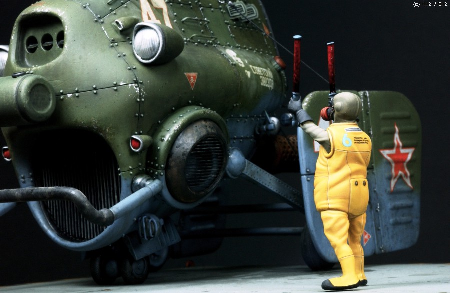 스케일은 1/35이고 제품은 비행선과 인형8명 입니다.